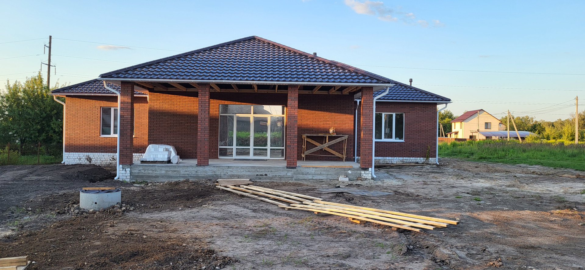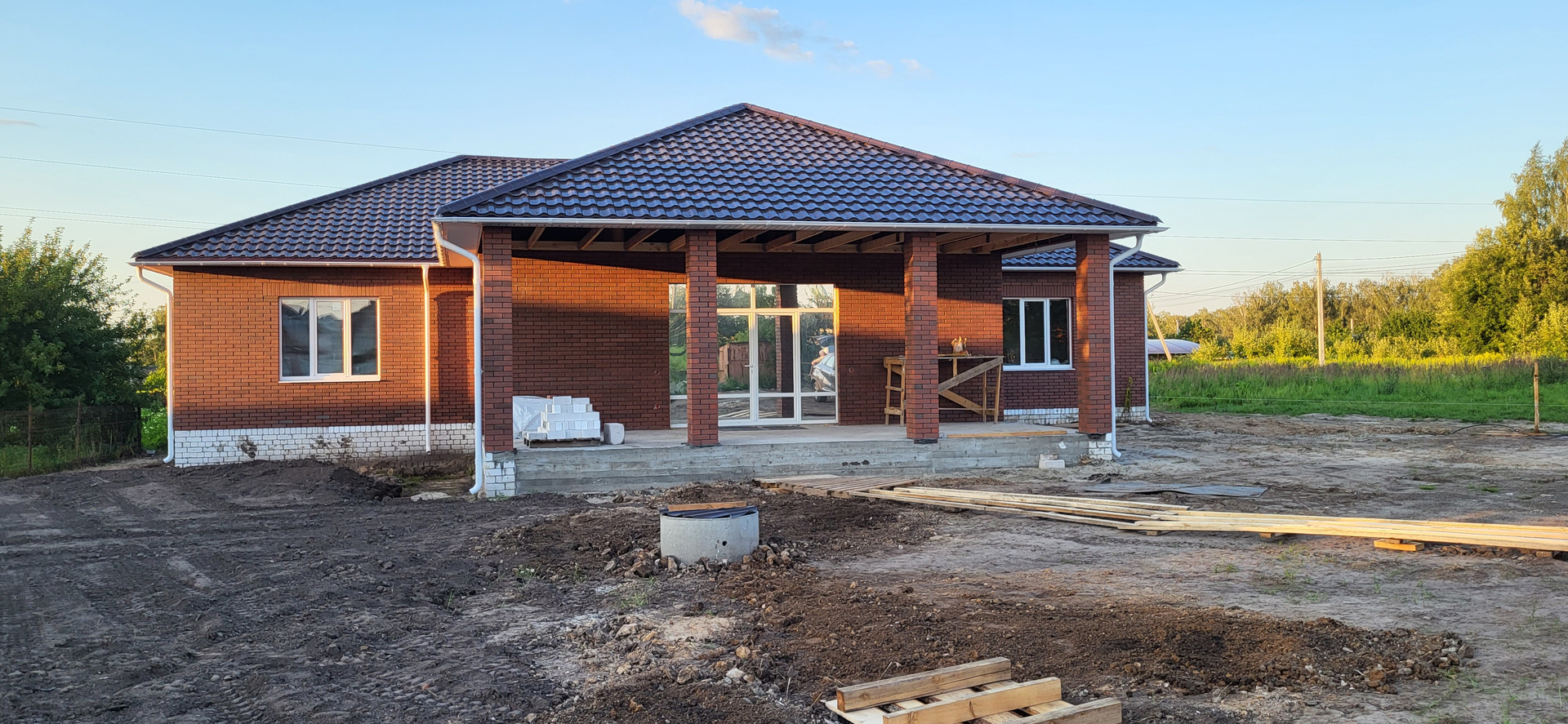 Площадь дома 246 м² (по внешке) 231 м² внутренняя + большая терраса площадью 38 м². 4 жилые комнаты, кухня-гостинная, 2 с/у (один с окном), гардеробная, кладовая рядом с кухней и большое техническое помещение.