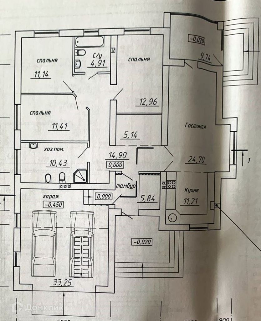В доме встроенный гараж на 2-е машины с автоматическими подъемными воротами и погребом (6 кв. м.).