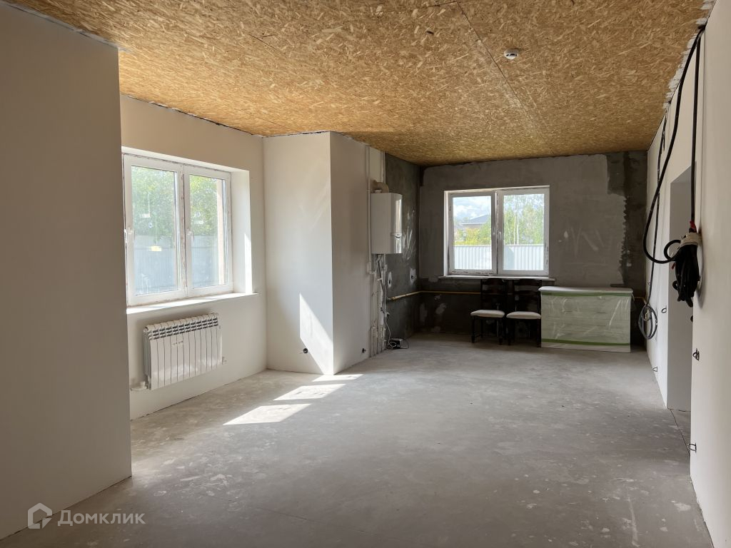 По всему дому сделана чистовая отделка (на полу залита стяжка, стены выведены по маякам под белое).