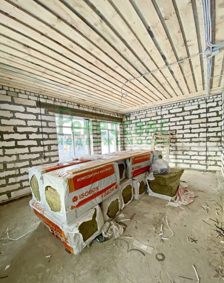 Большая кухня-гостиная общей площадью 33.2 кв.м., + 3 изолированные комнаты. Пеноблок + утеплитель+ обложен качественным декоративным облицовочным кирпичом.