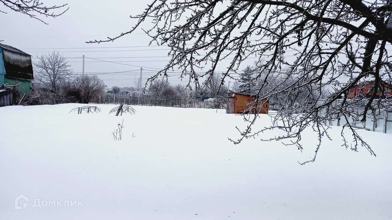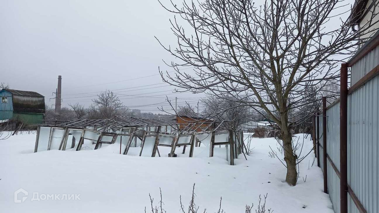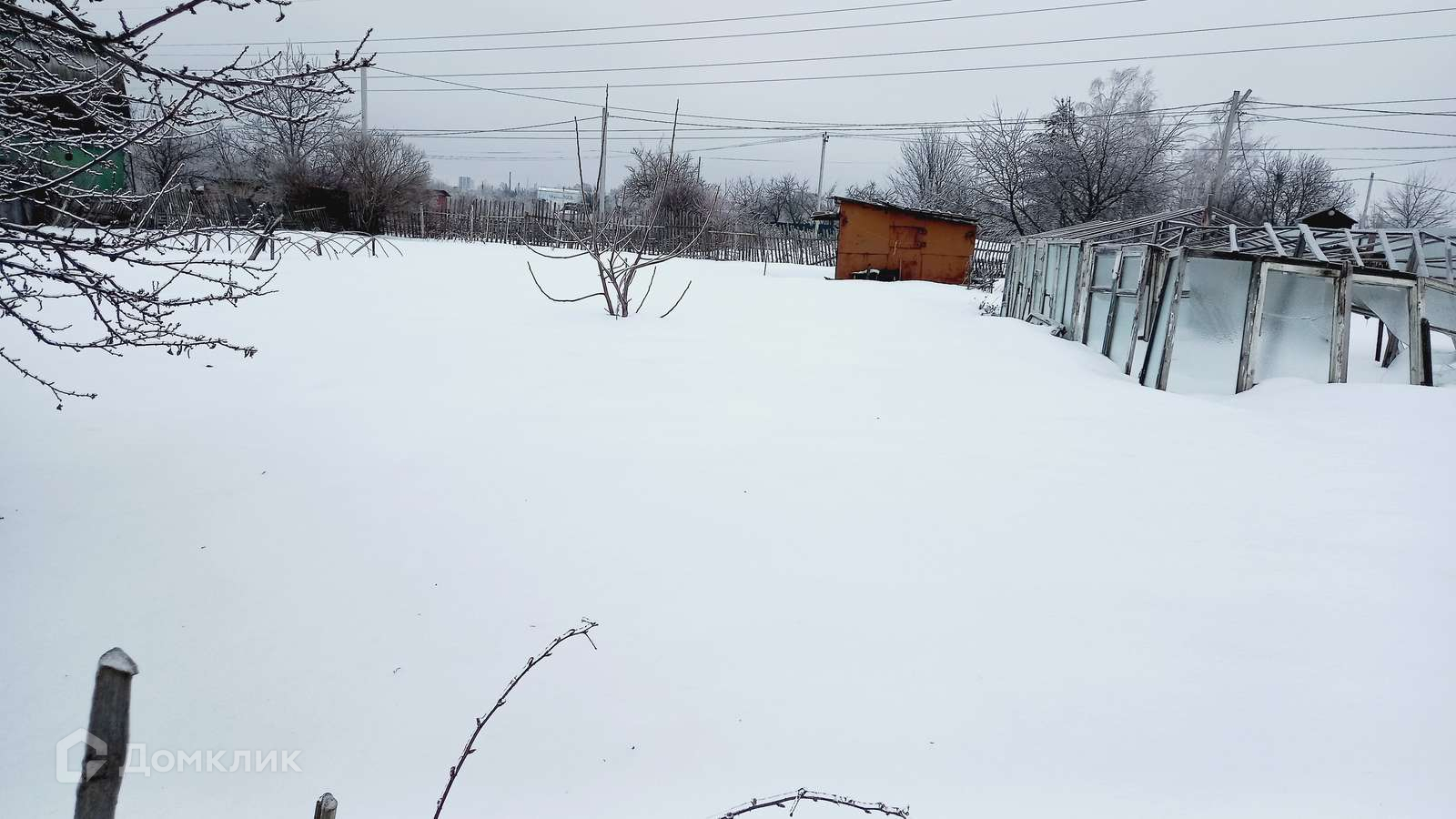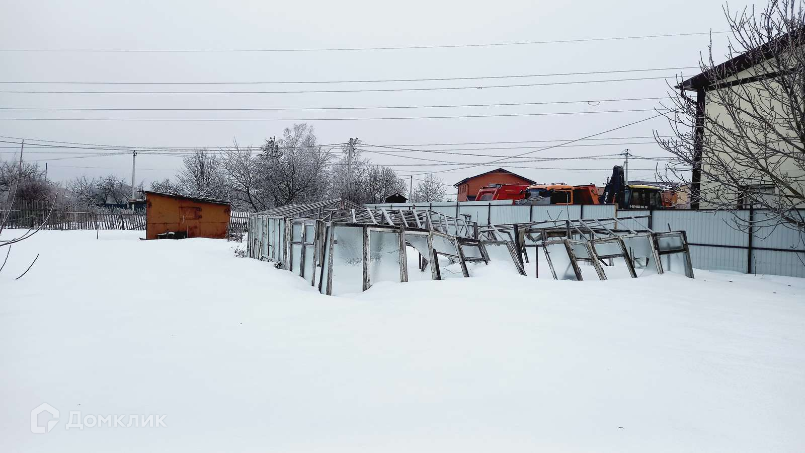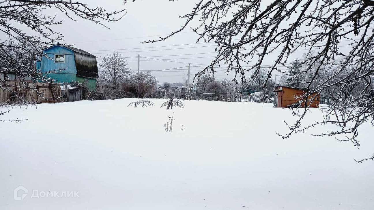 На территории участка- металлический сарай. На участке - плодовые деревья.