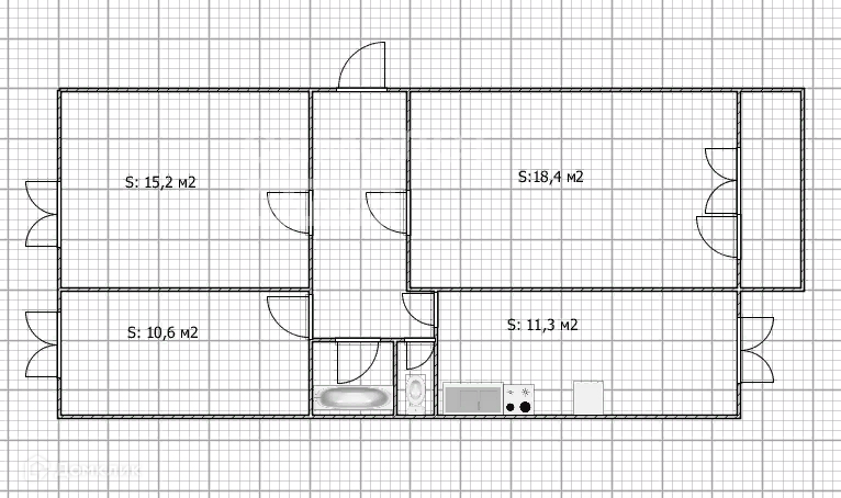- Квартира-распашонка, что несомненно является большим преимуществом, удобная и функциональная планировка, окна на обе стороны дома;