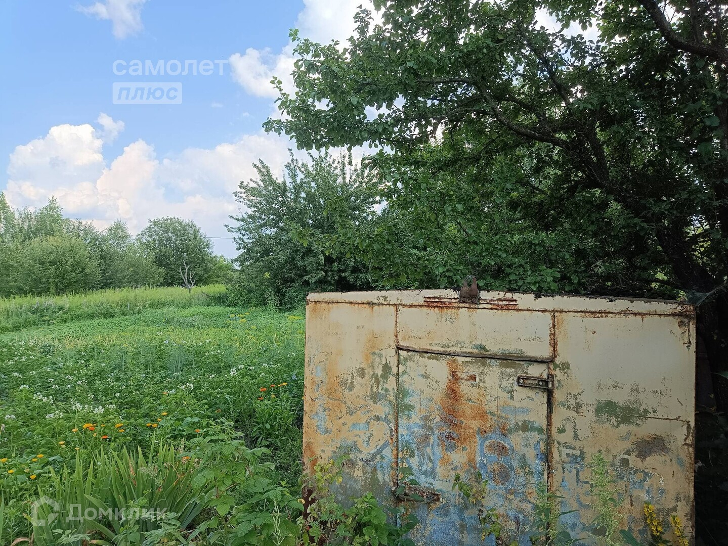 -на участке находится металлический вагончик для хоз. инвентаря;