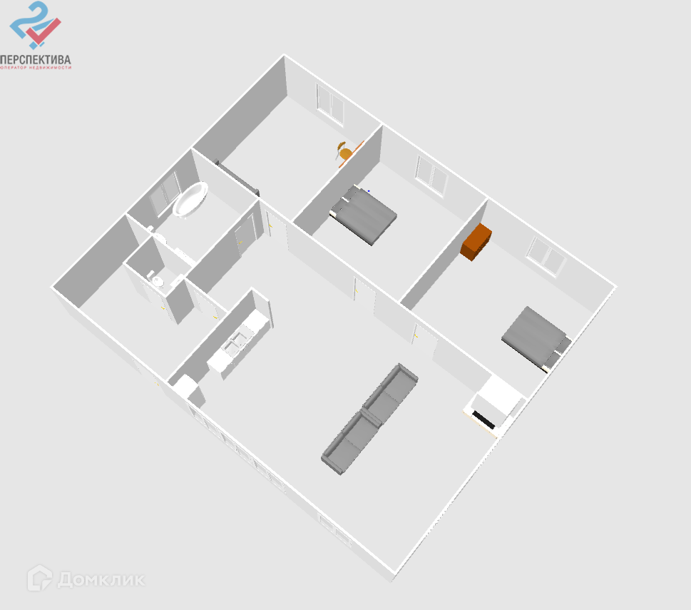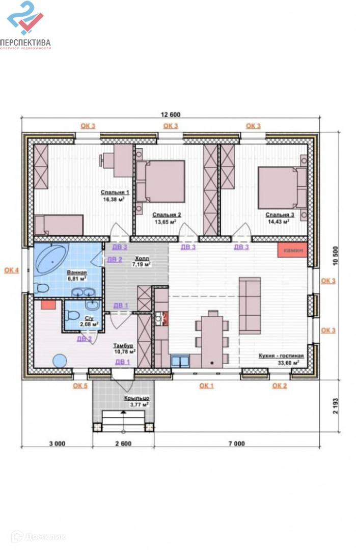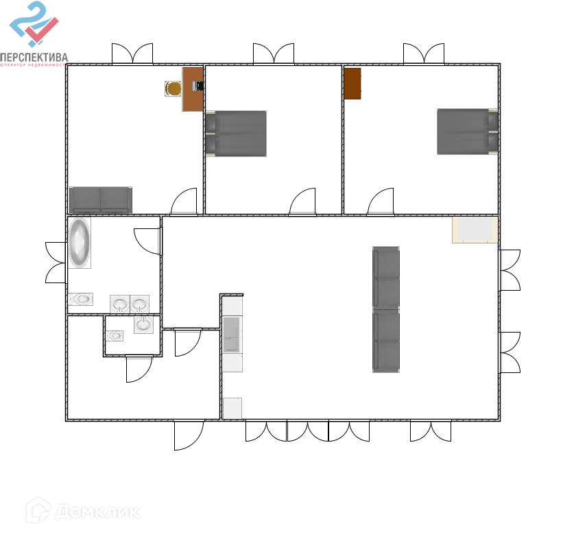 Планировка 3 спальни, огромная кухня -гостинная, 2 санузла
