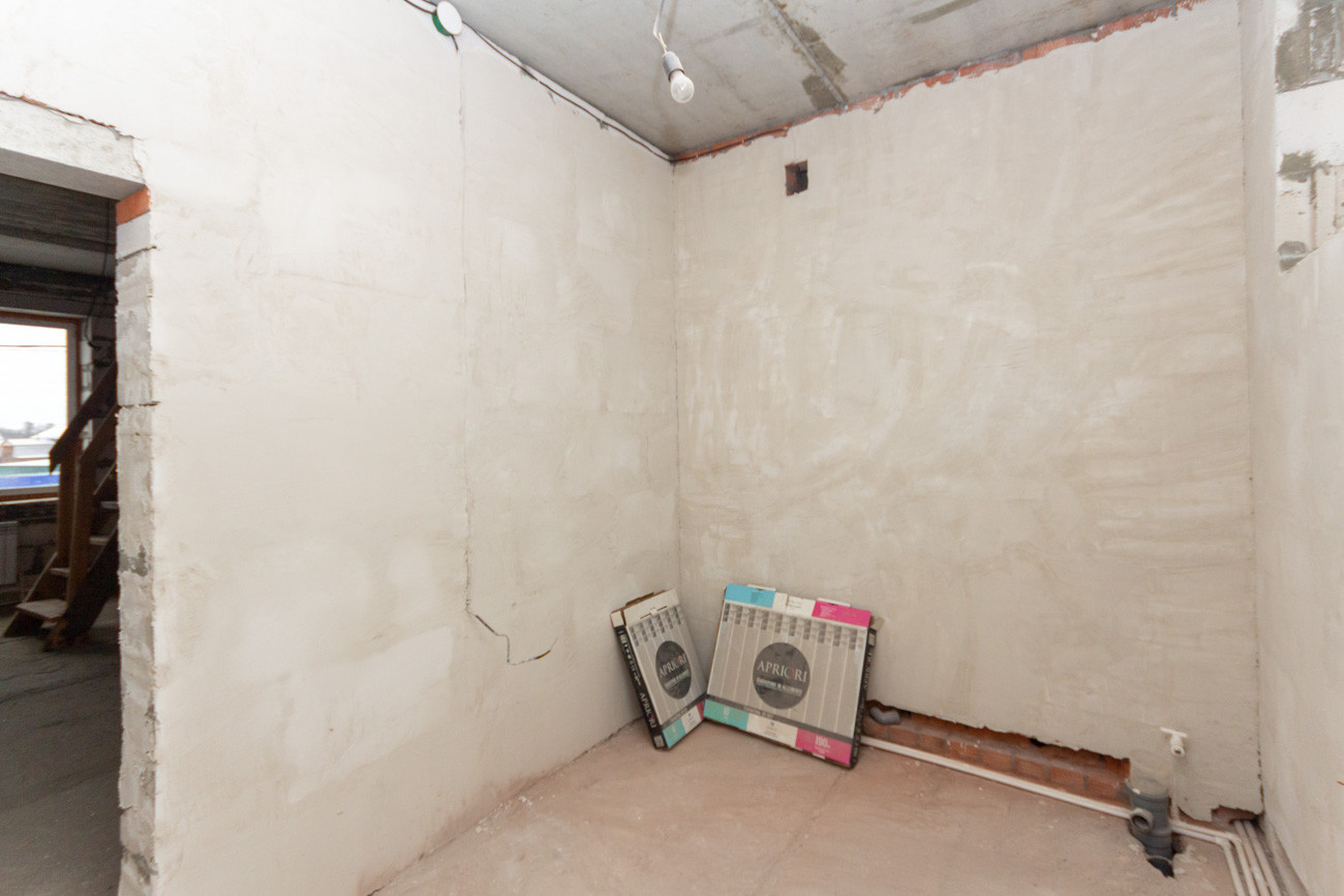 В дом заведены все коммуникации и раскинута электрика и сантехника.