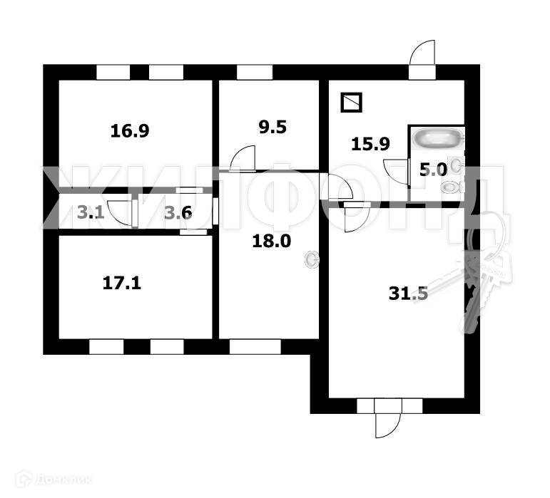 Жилая площадь 43.5 м2