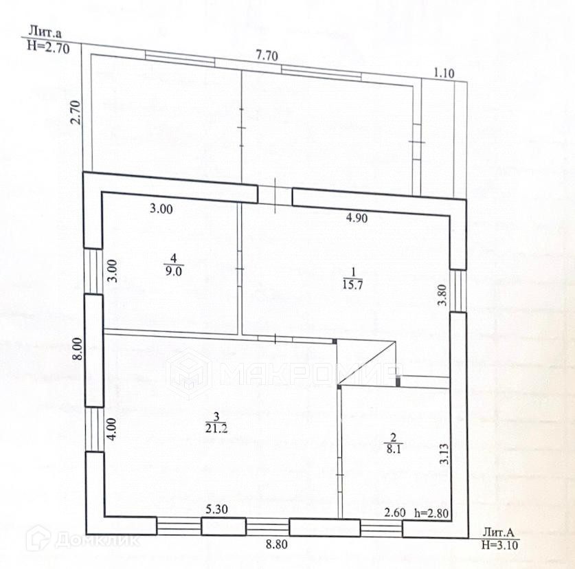 Общая площадь 54 м2