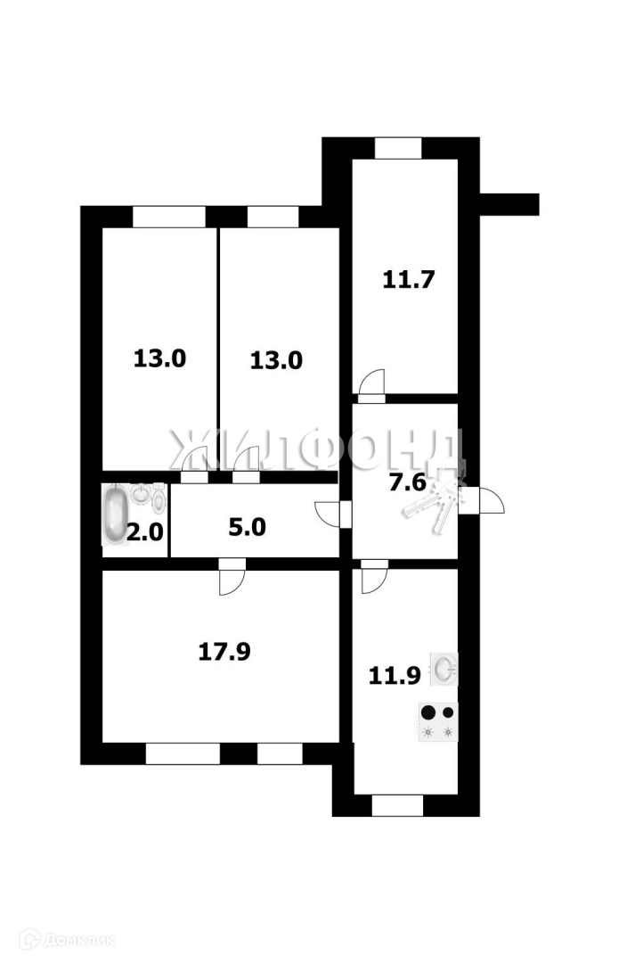 Жилая площадь 43.2 м2