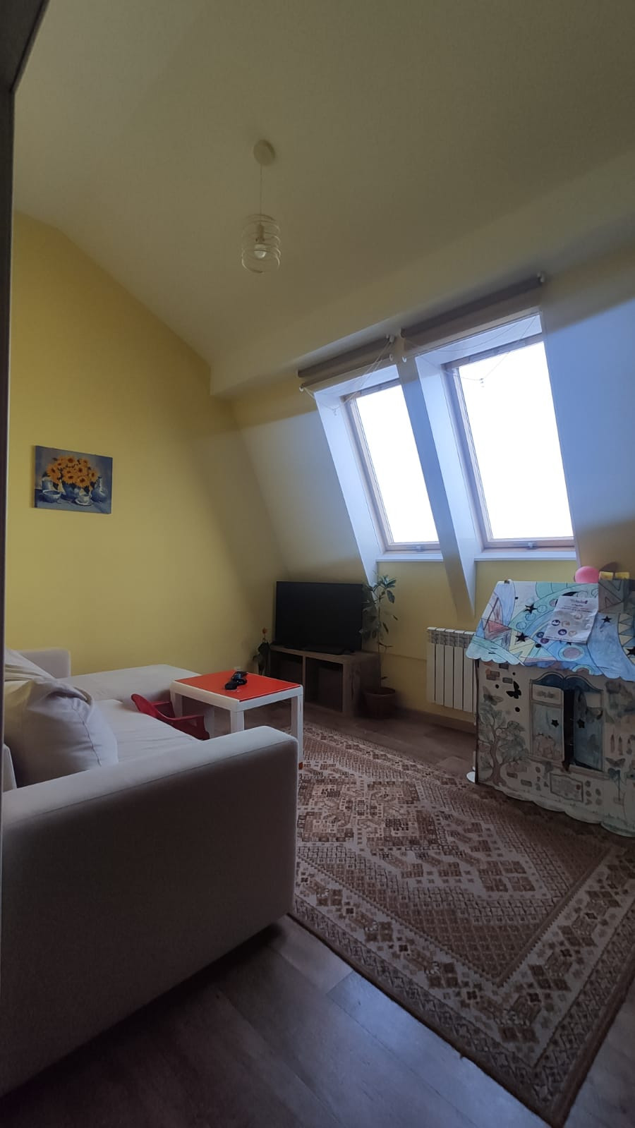 Для вас в тихом, чистом и в дали от городской суеты месте квартира с оригинальной планировкой на мансардном этаже с высокими , фигурными потолками .