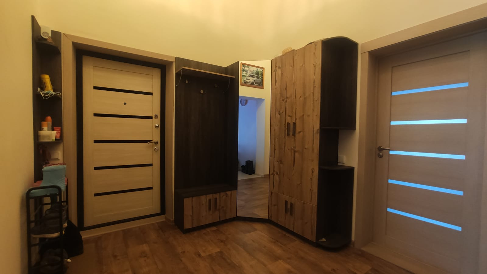 Кухонный гарнитур, шкаф в коридоре, гардеробная остаются в подарок.