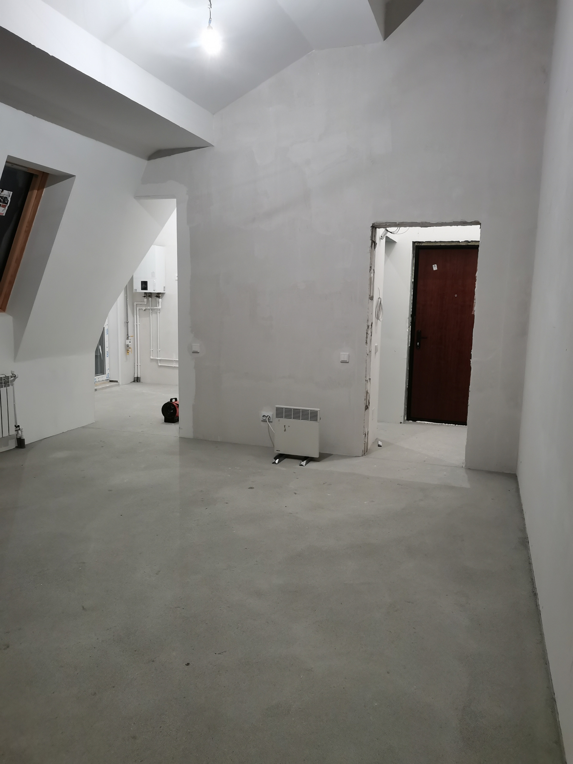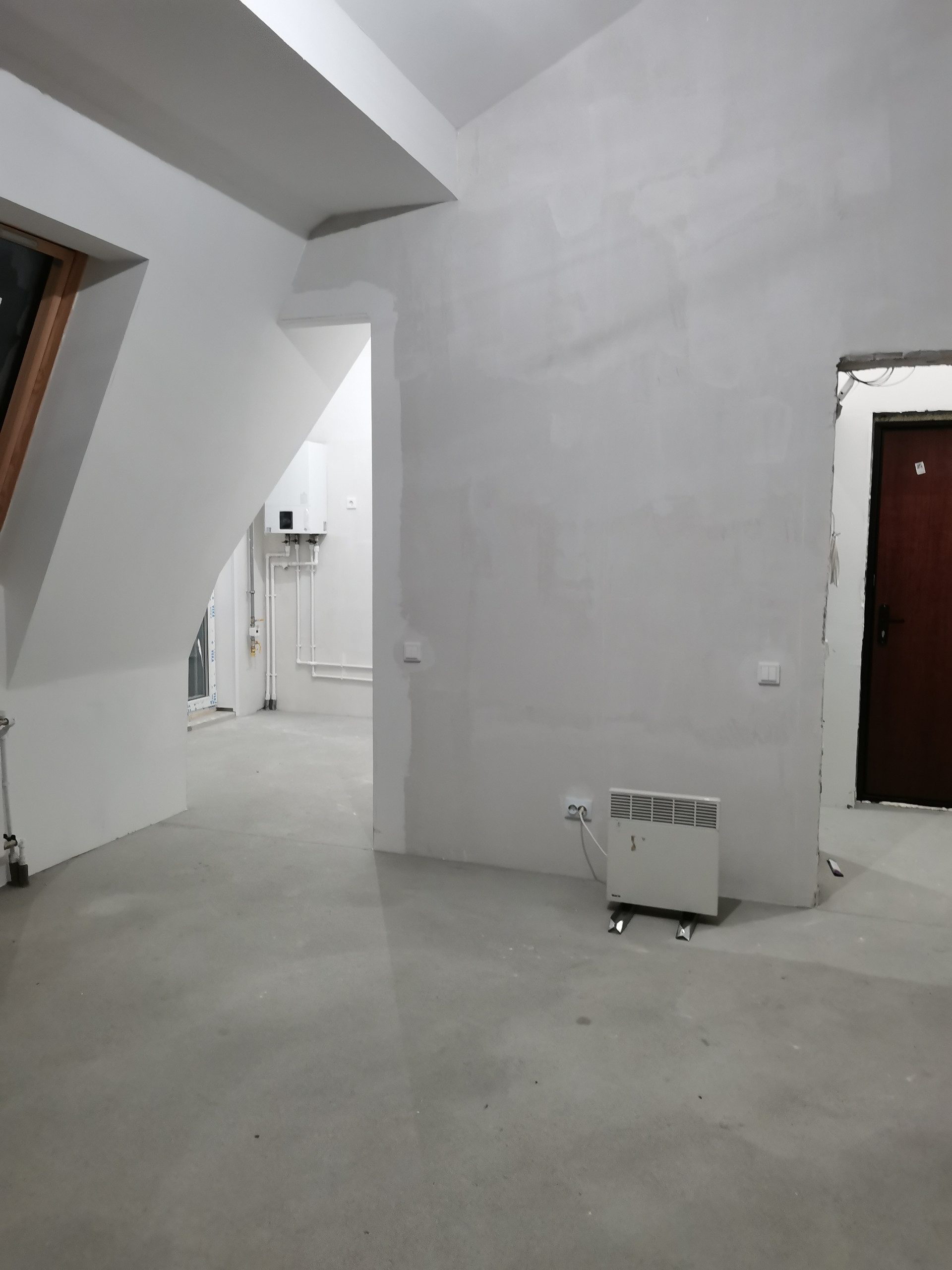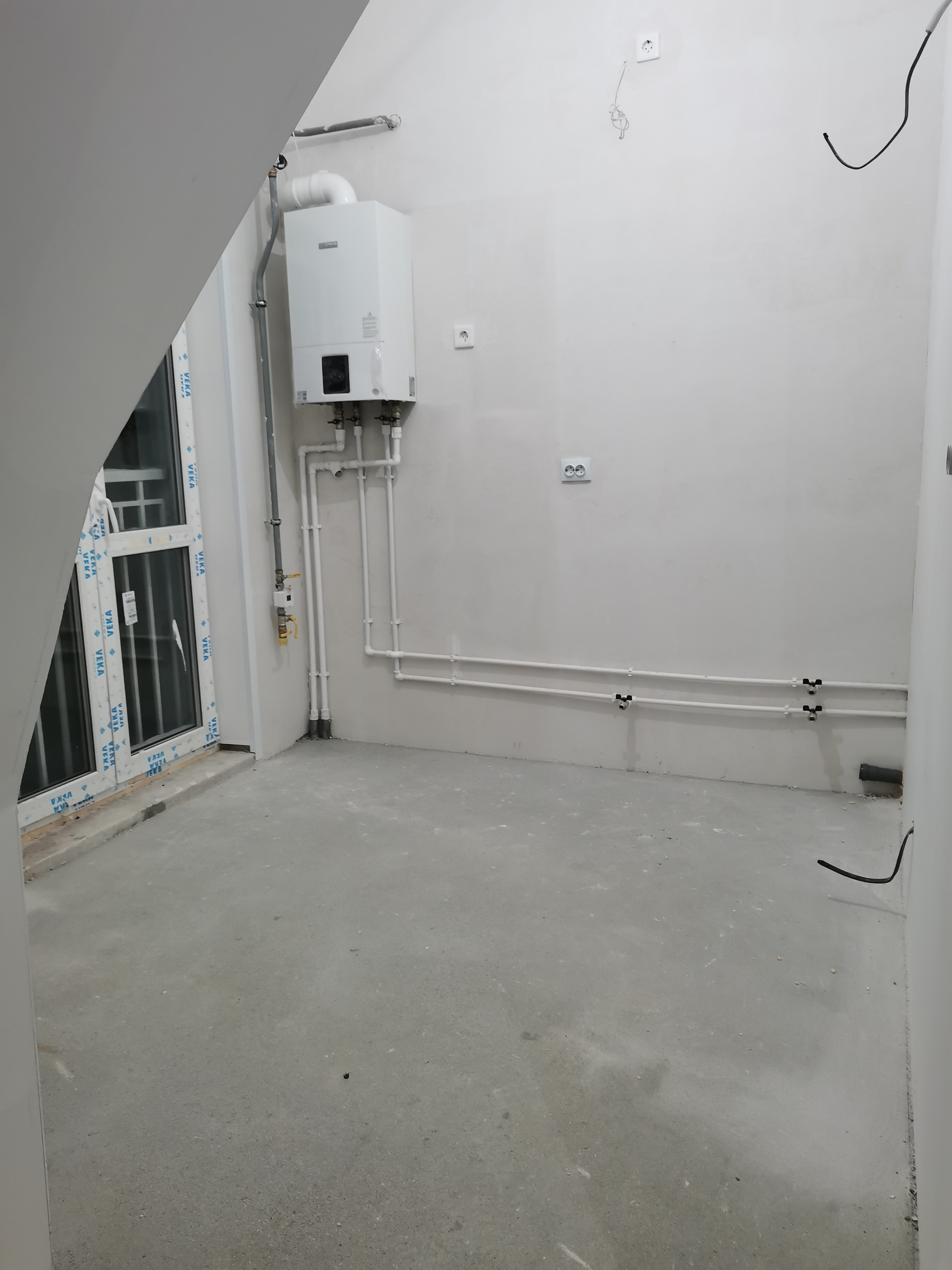 Квартира в новом доме. Подходит под любую форму расчета, без обременений, полная цена в договоре купли-продажи, ключи получены.  Выполнена чистовая самоотделка, установлены радиаторы отопления,  розетки, выключатели, газовый котел- Bosh . Планировка позволяет создать двухкомнатную квартиру, благодаря высоте потолков свыше 3-х метров у Вас появляется возможность сделать второй свет. На кухне панорамное окно. Всего 4 квартиры на площадке.  В доме два  подъезда. В шаговой доступности теплая остановка 28 автобуса, на территории комплекса свой ритейл парк. Ключи в агентстве, просмотр в удобное время.