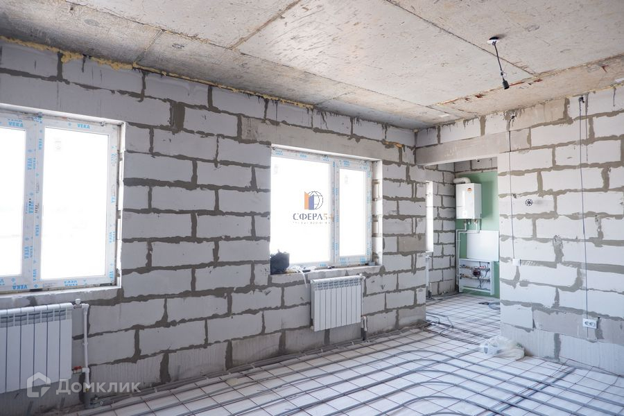 Дом построен из сибита, облицован кирпичем, квартира под самоотделку, установлены радиаторы, газовый котел, электроразводка.