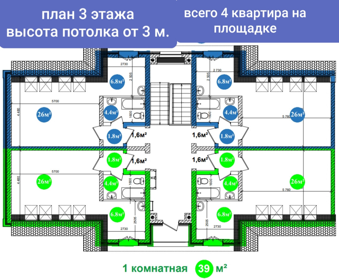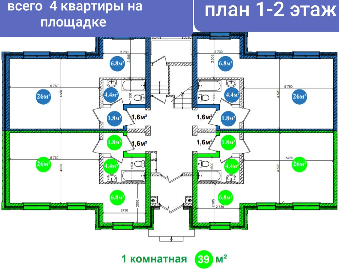 Общая площадь 39 м2