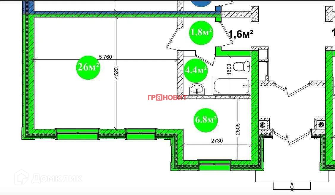 Жилая площадь 26 м2