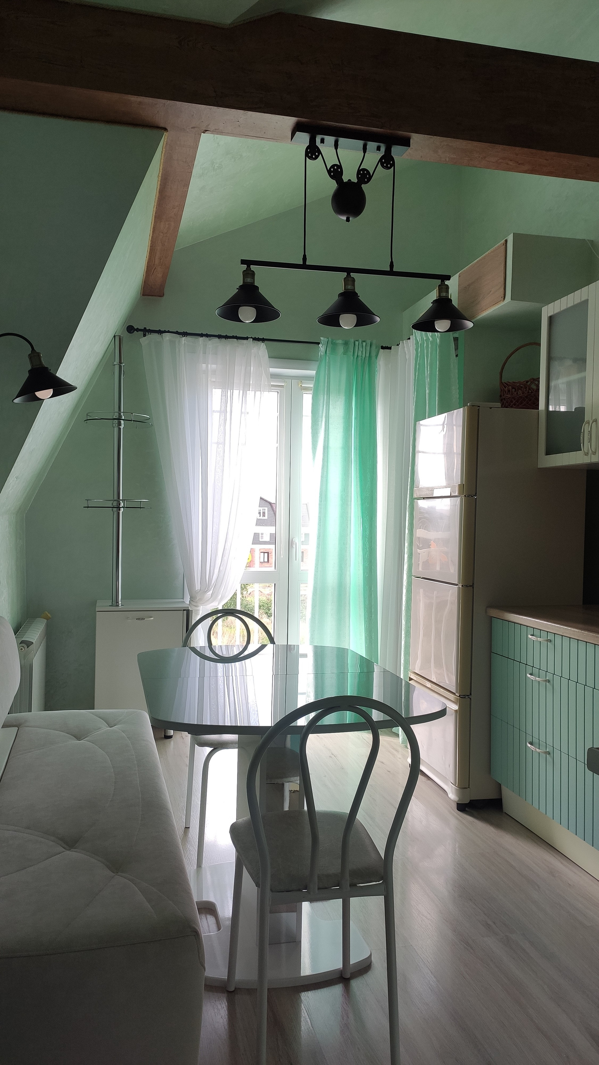 + на мансардных окнах Velux установлены жалюзи дуэт ( затемняющая и плиссе) этой же фирмы