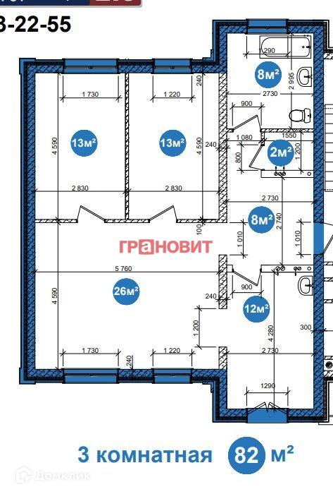Общая площадь 82 м2