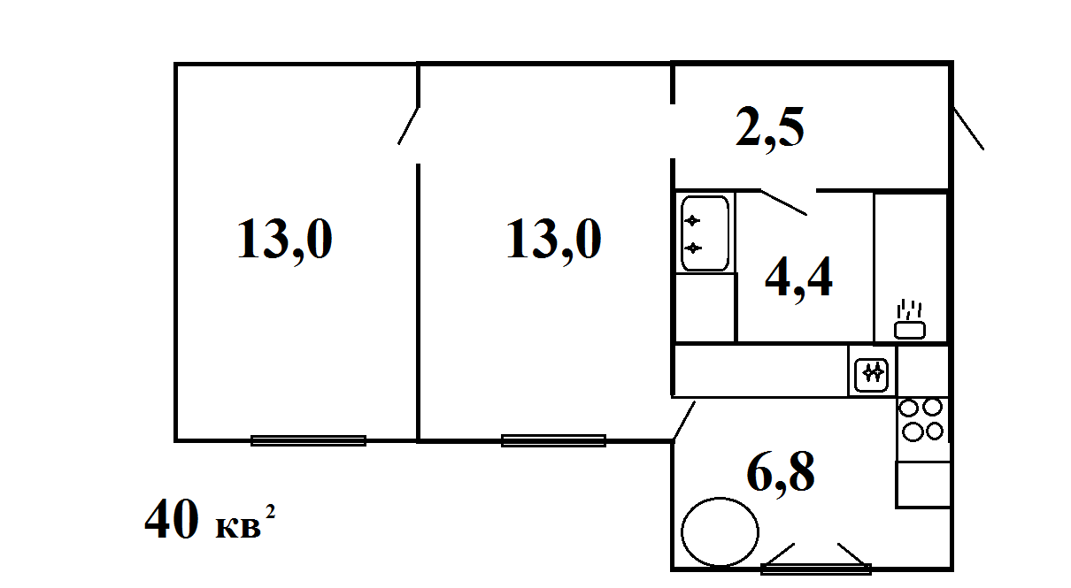 Общая площадь 40 м2