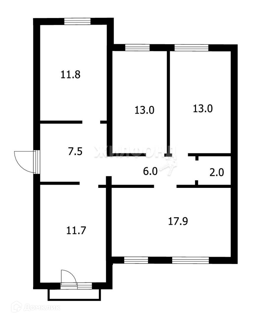 Жилая площадь 43.9 м2