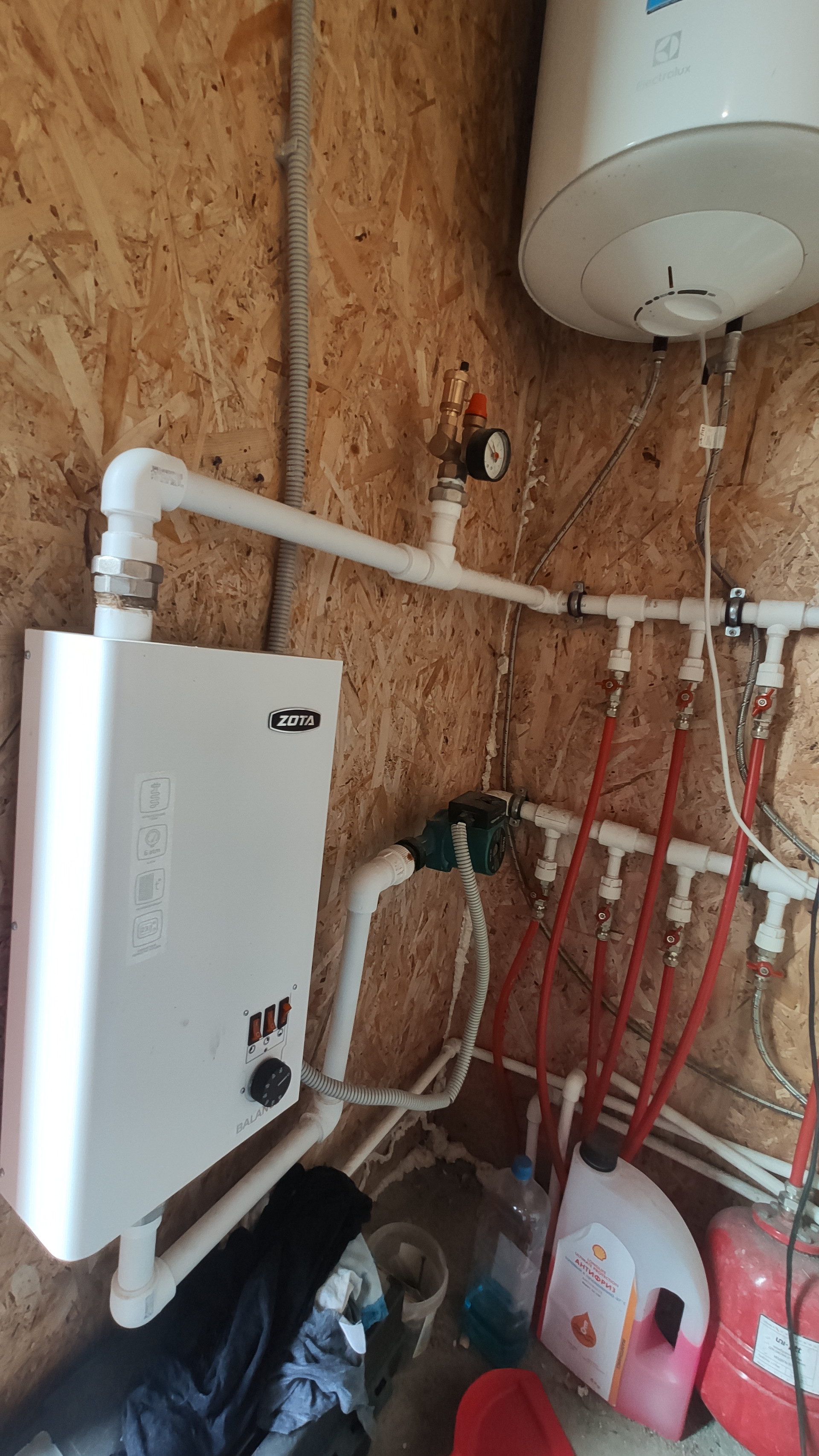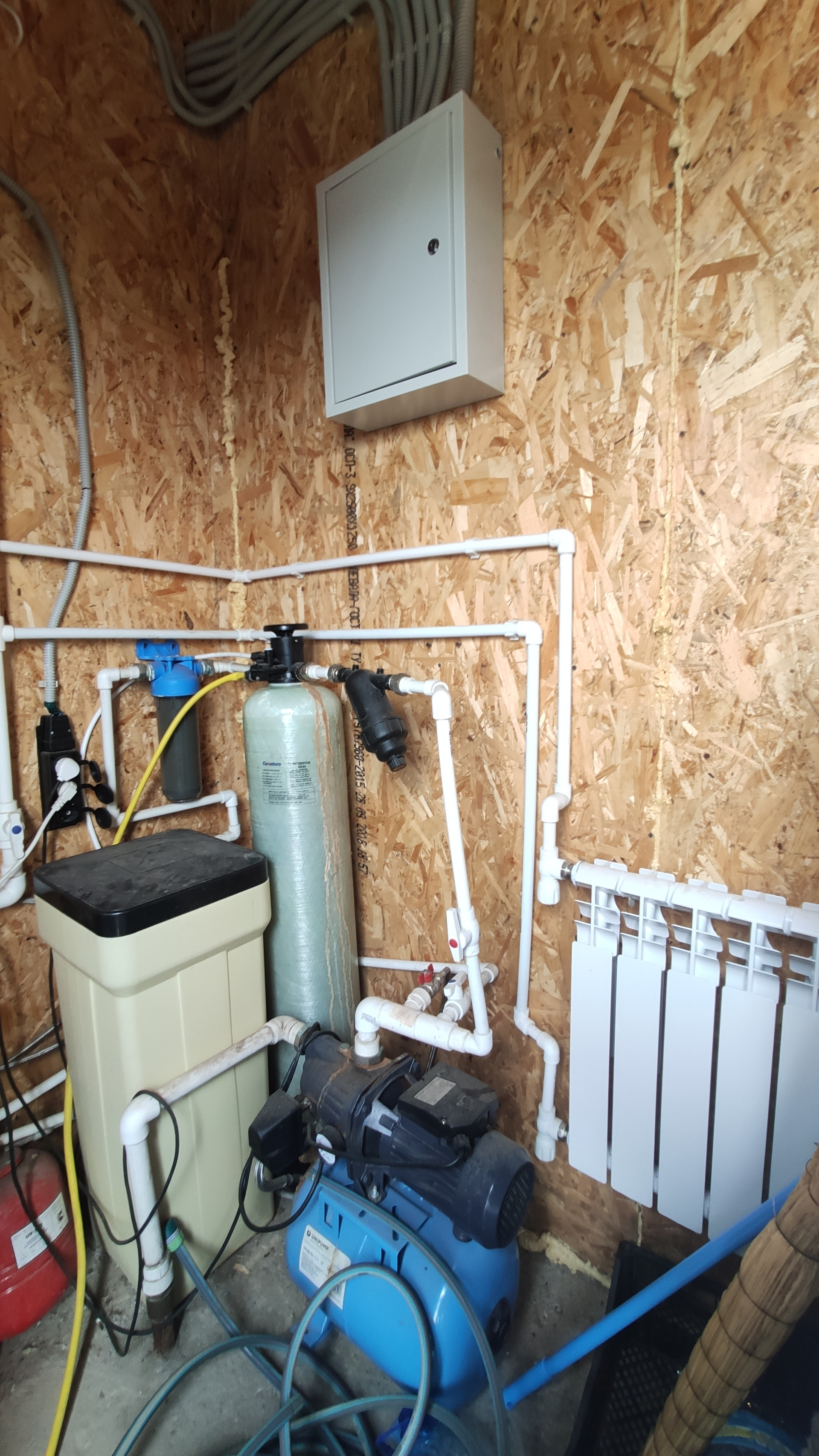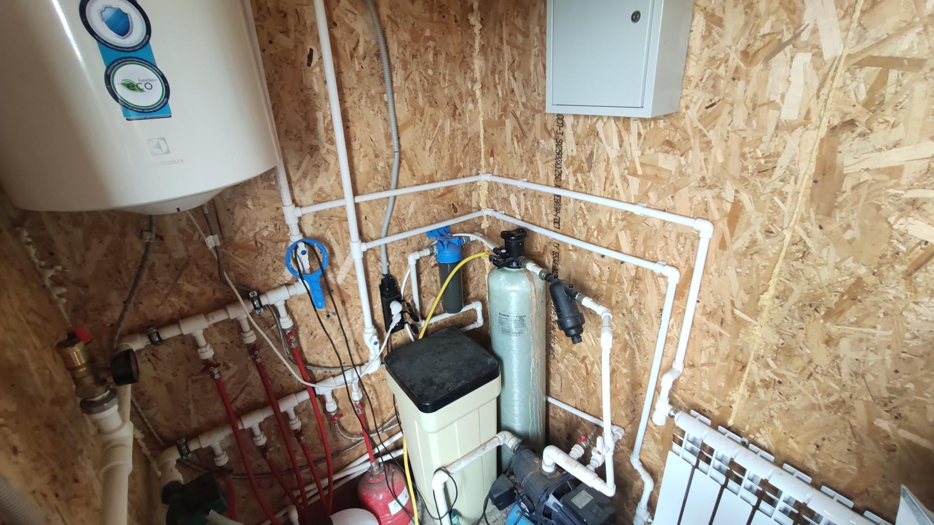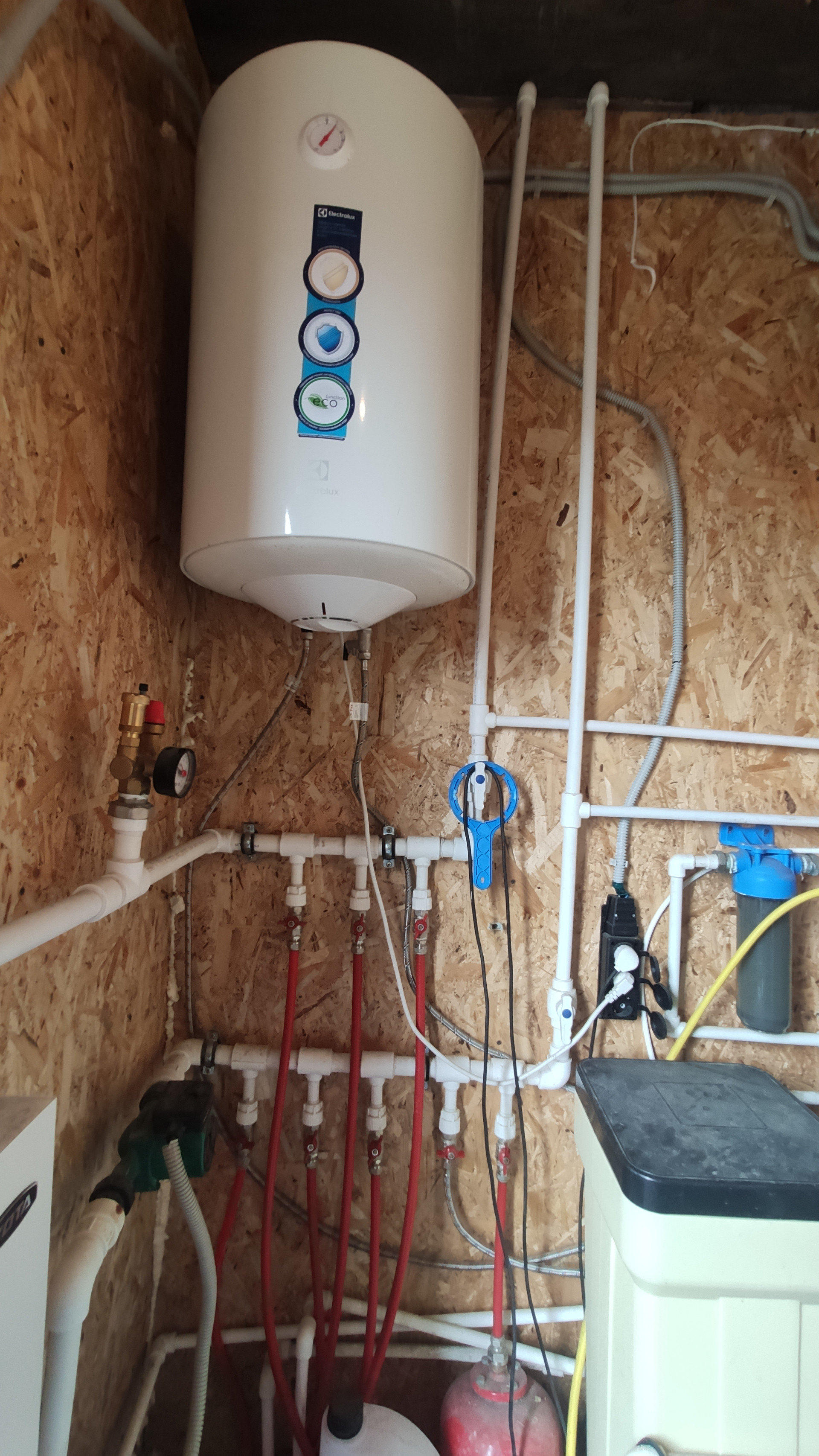 На первом этажи теплые водяные полы, на втором радиаторы. Установлен электрический котел. Центральное водоснабжение и собственная скважина, современная система очистки воды, септик три кольца. Техническое помещение расположено вне жилой зоны.  Газ в ближайшем времени проведут, договор заключен.