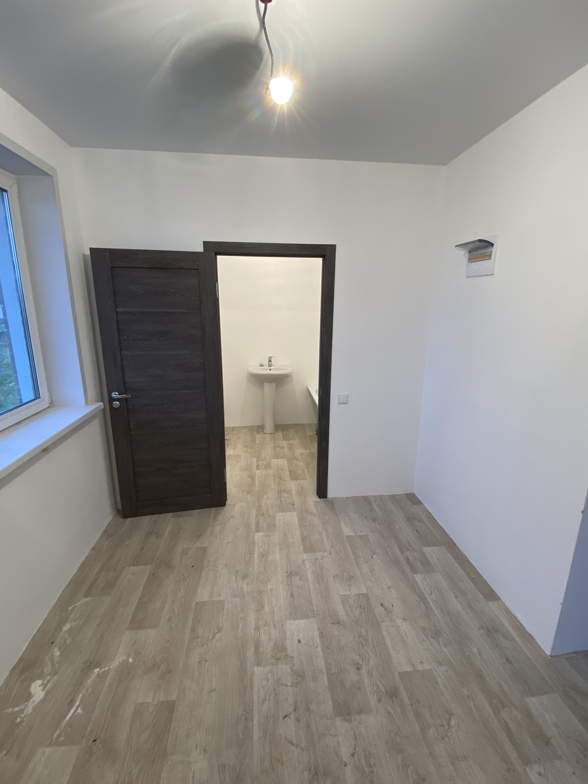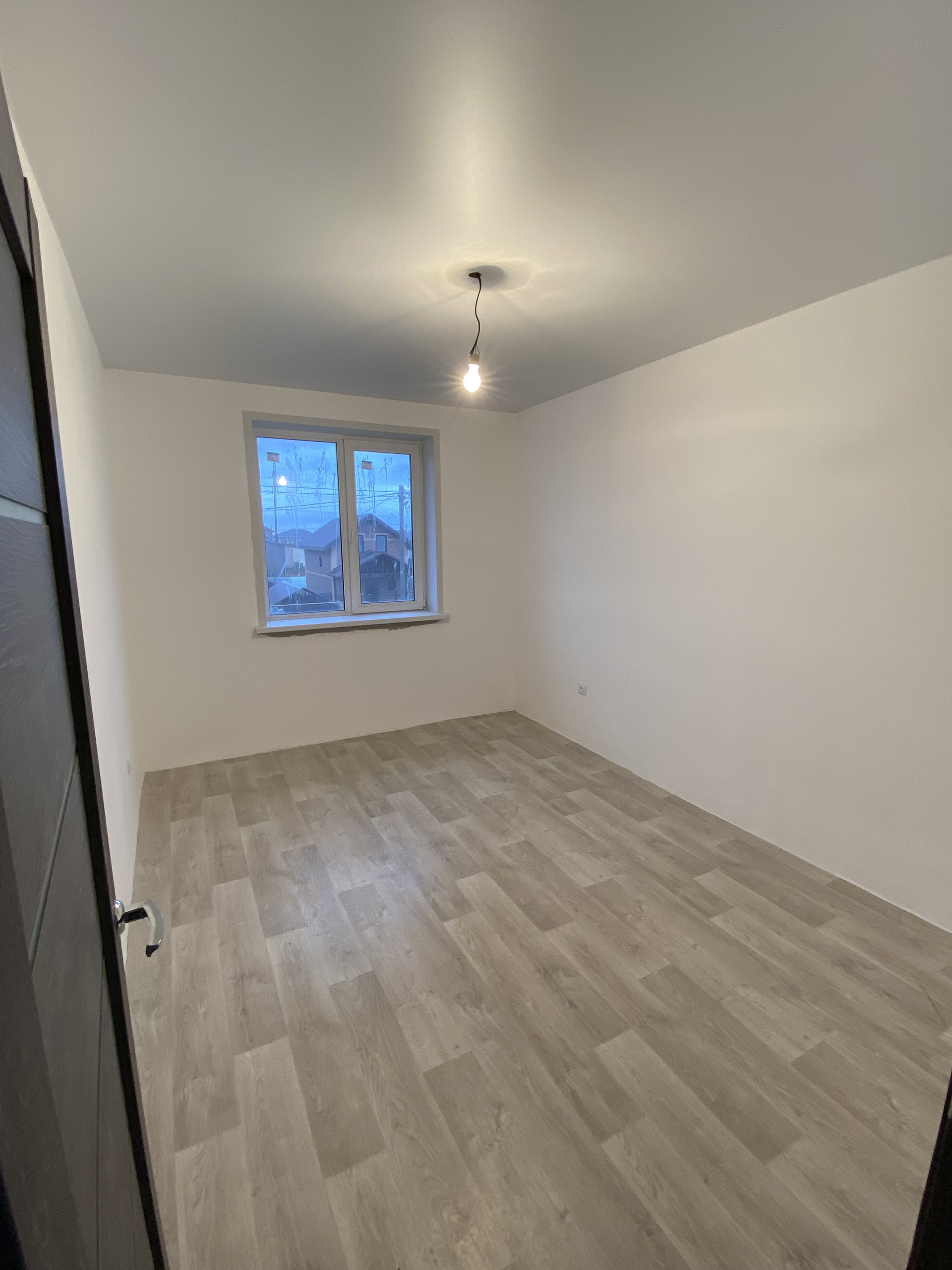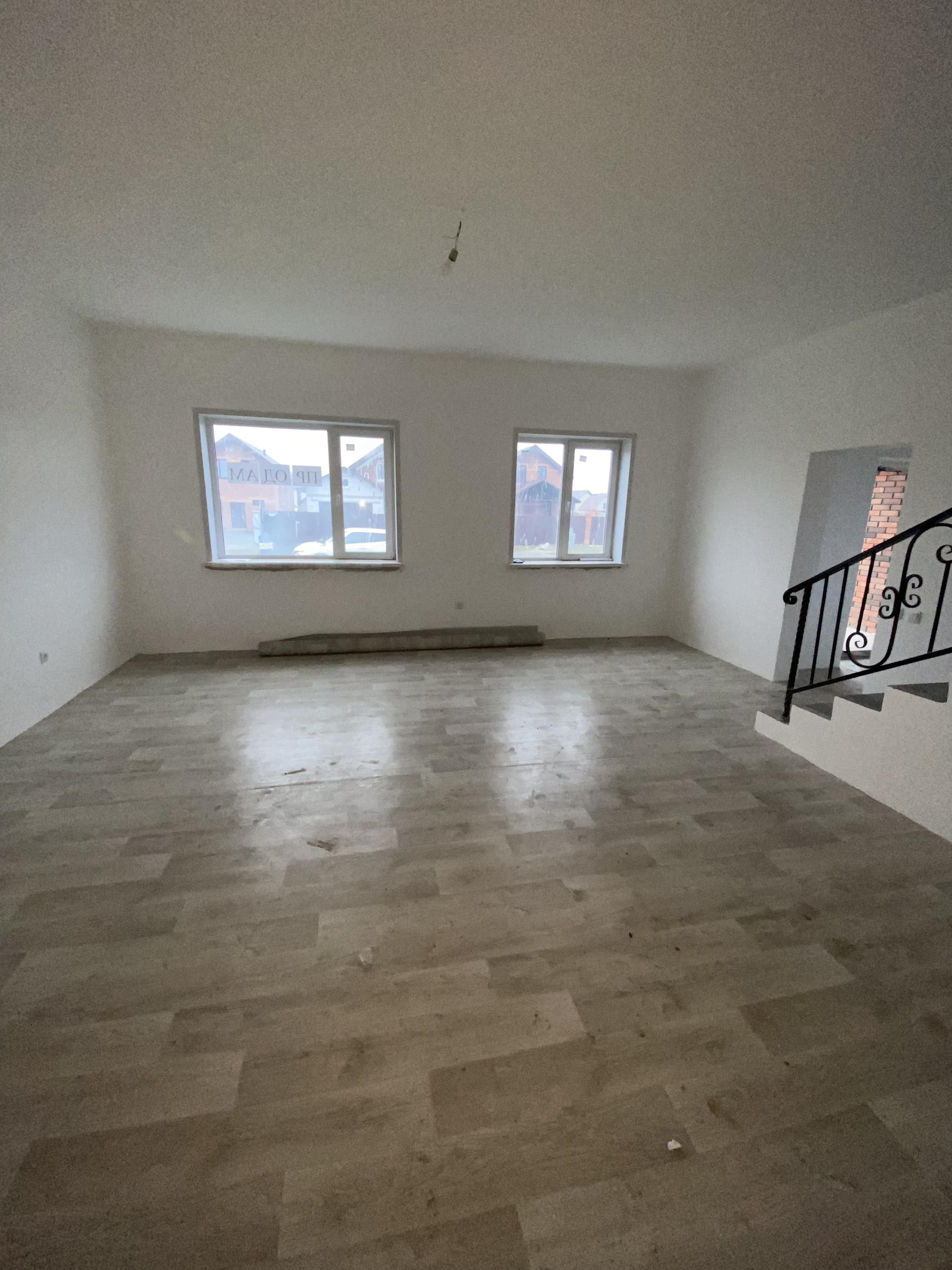 В квартире выполнен свежий ремонт в светлых тонах: на полу линолеум, стены под покраску или поклейку обоев на ваше усмотрение, установлены межкомнатные двери, кованые перила на лестнице.