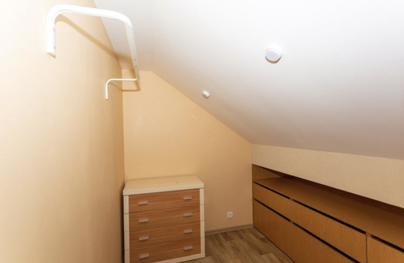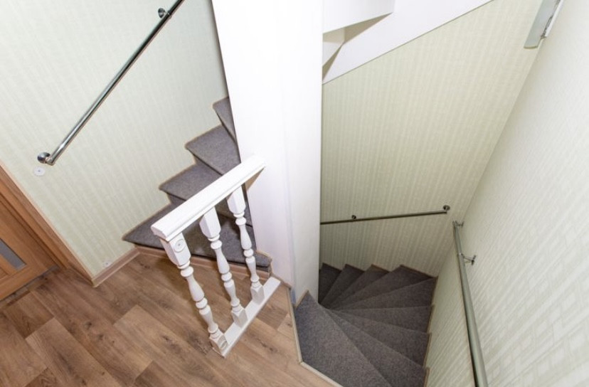 На первом этаже располагается прихожая, просторная гостинная с кухонной зоной и сан.узел, на втором этаже - холл с вместительным шкафом-купе, две спальные комнаты, сан.узел и постирочное помещение, на третьем этаже спальная комната с гардеробной и сан.узел.