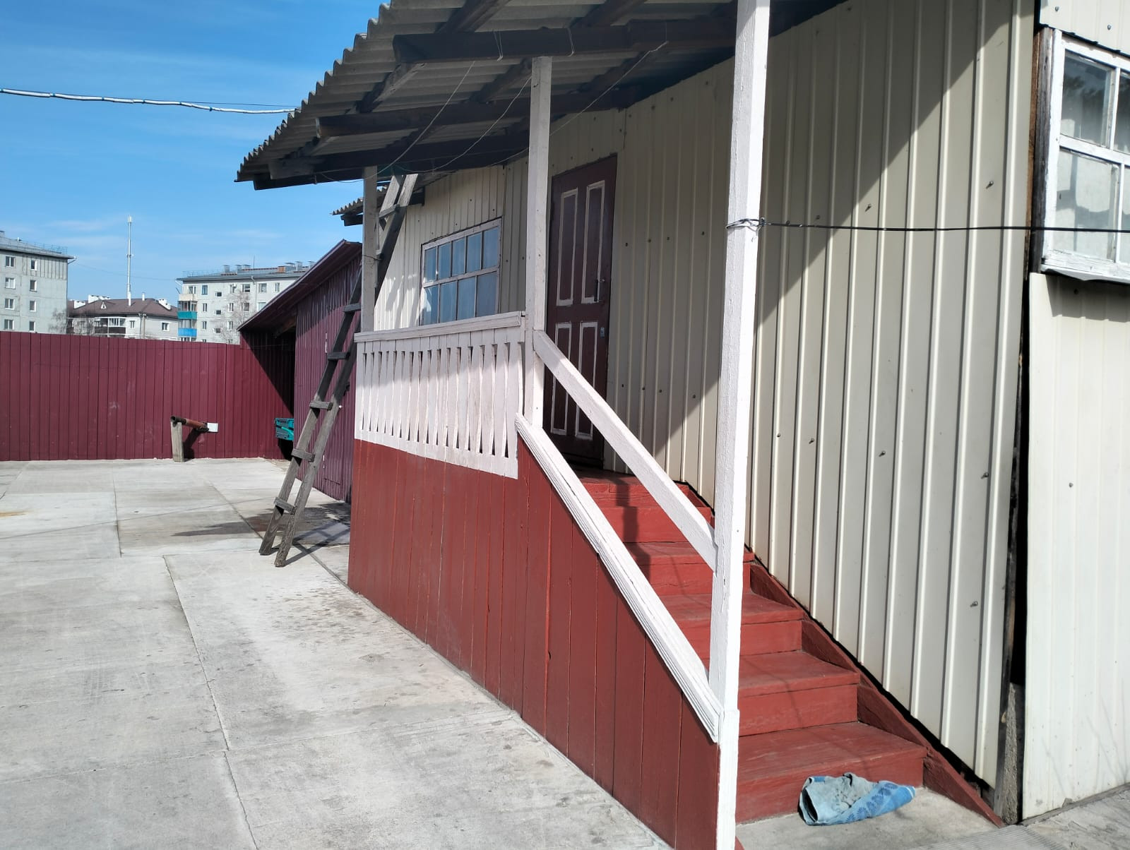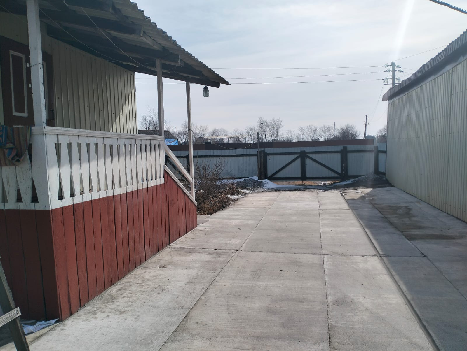 Большая и просторная веранда,удобное крыльцо с перилами.Гараж на 2-е машины,двор чистый и забетонирован,что создаёт уют и комфорт.На участке есть все необходимое для ведения хозяйства-сарай,теплица,большой огород.Огород удобрен .Различные плодово/ягодные насаждения.