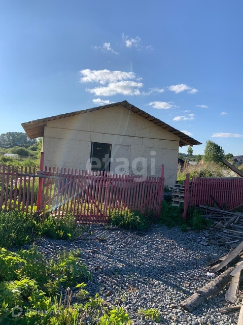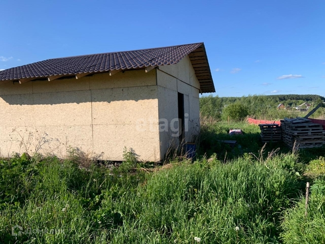 На участке есть недостроенный летний дом 56м2 из металлоконструкции, крыша металлочерепица. Также есть теплица, скважина , туалет на улице. Участок огорожен деревянным забором.