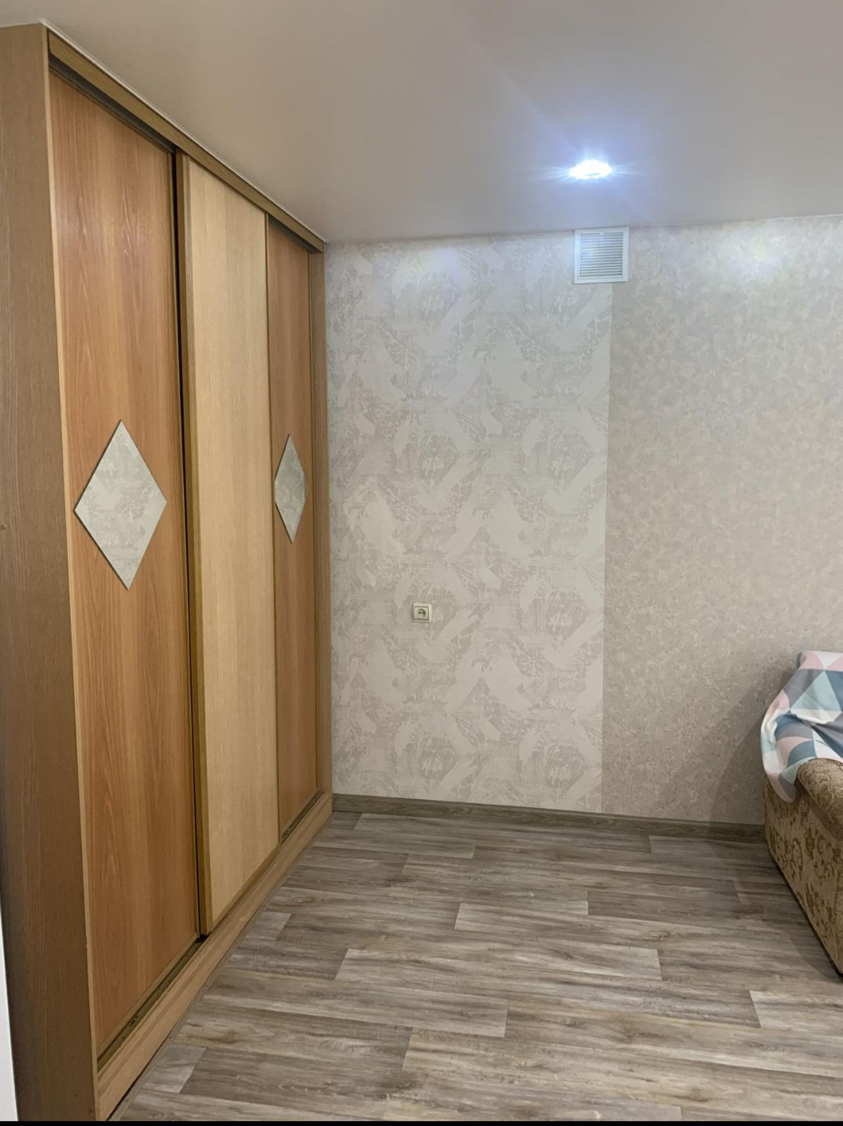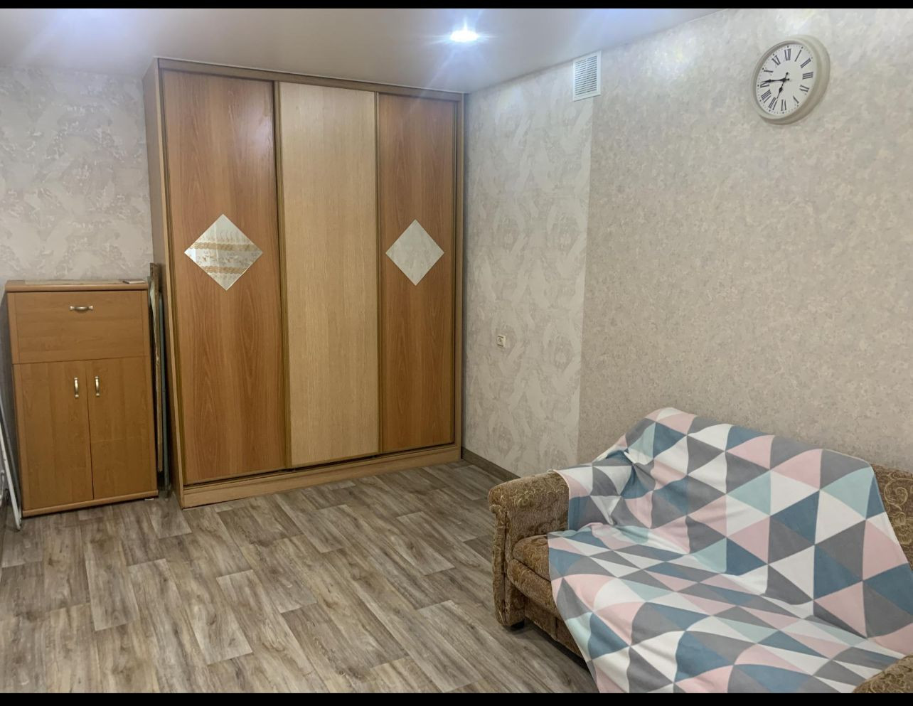 Комната не требует вложений. На стенах новые обои, на полу линолеум.