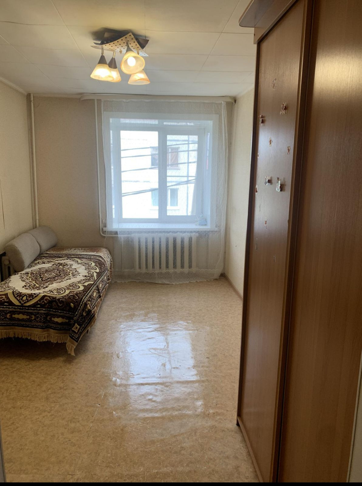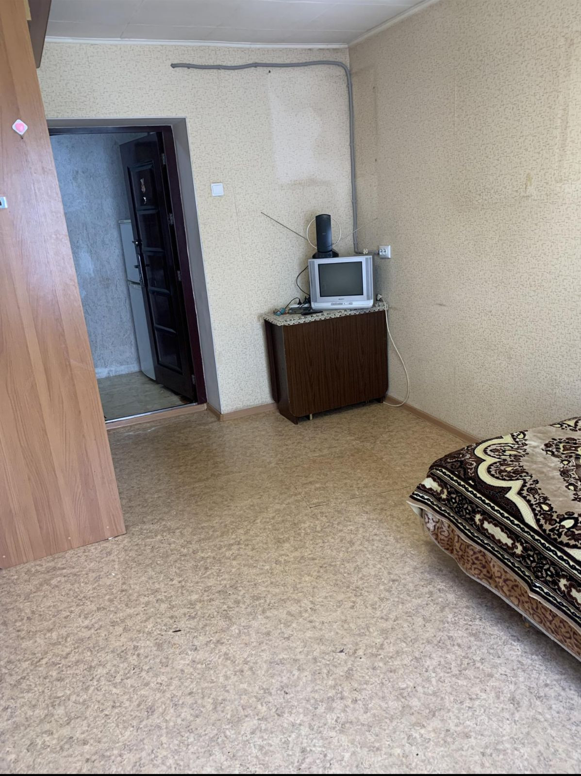 Комната не требует вложений. На стенах новые обои, на полу линолеум.
