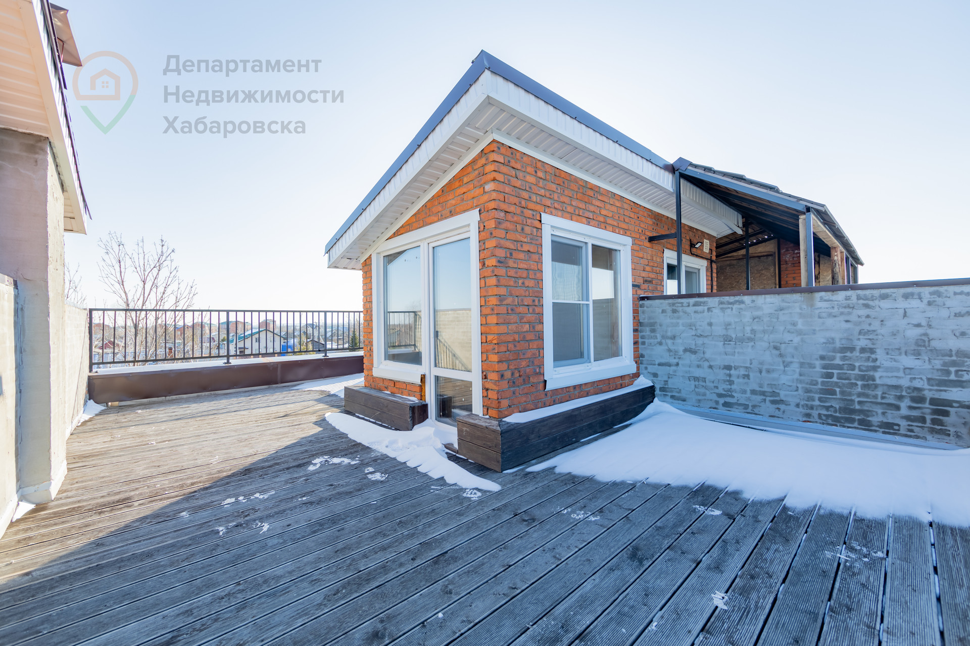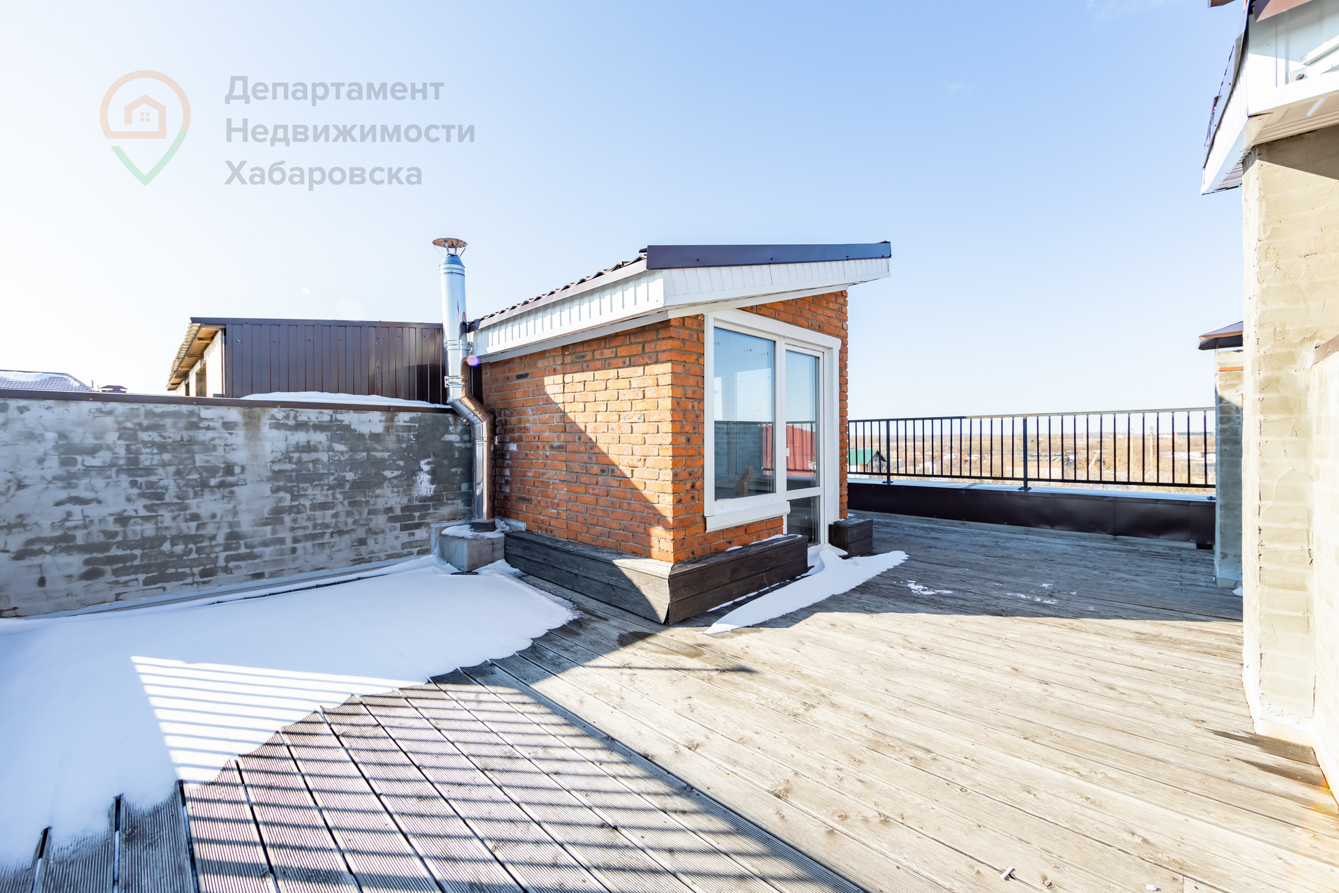 На крыше расположена терраса, можно сделать зону барбекю, зону отдыха.