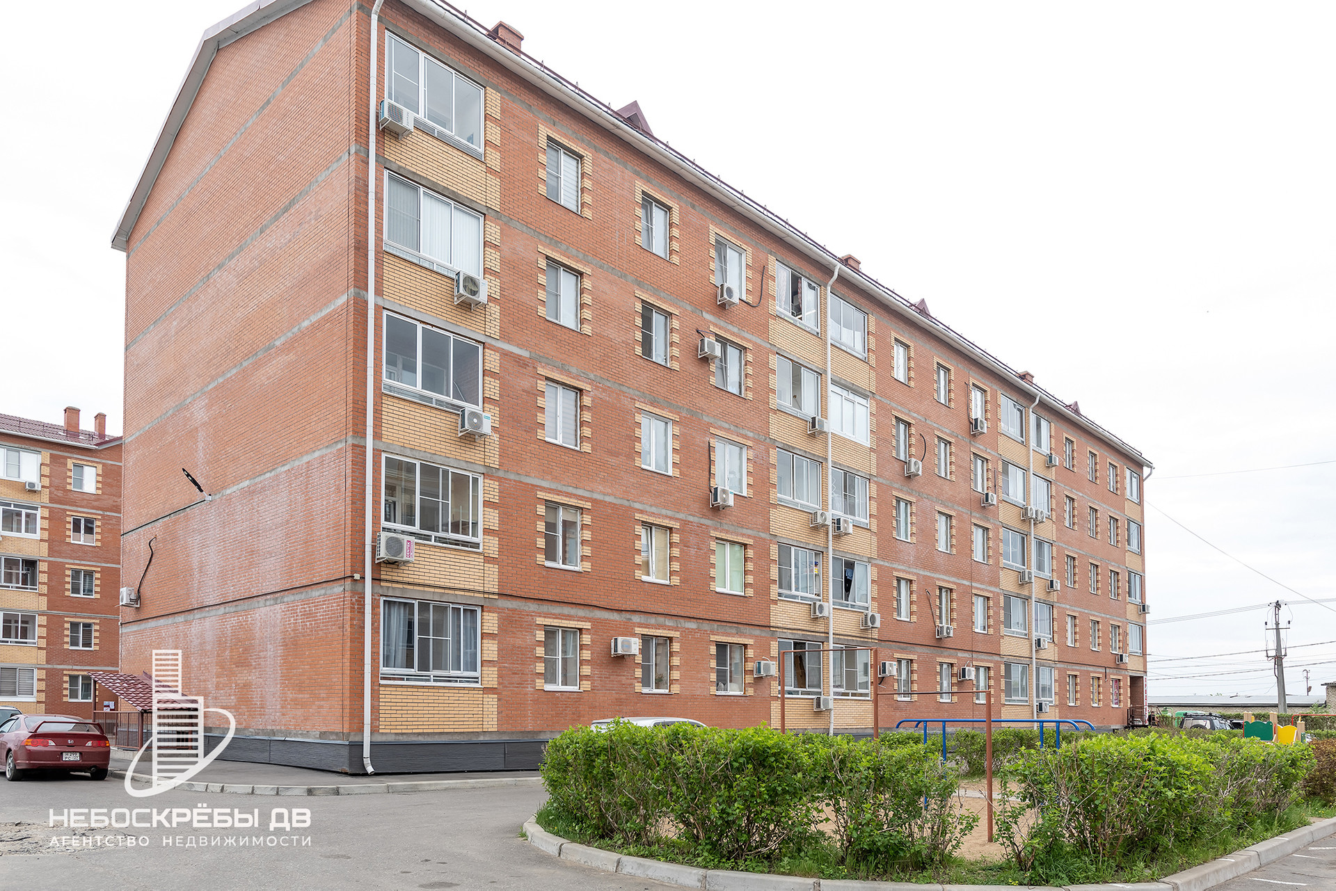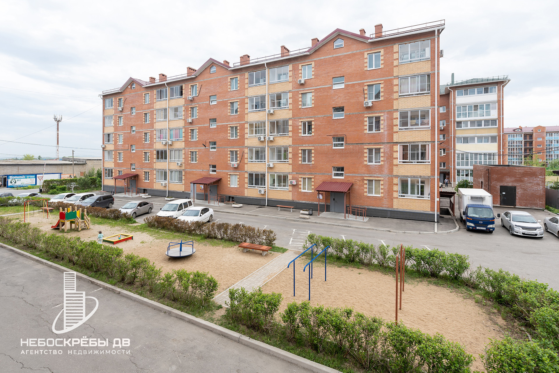 + просторный зеленый двор с современной детской и спортивной площадкой, всегда есть место для парковки;
