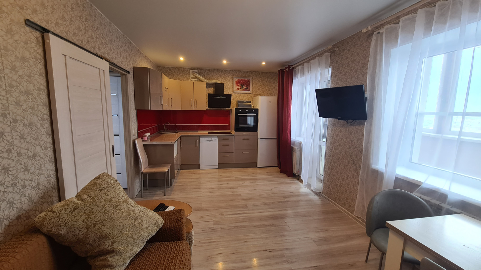 Большая, светлая, очень тёплая квартира! Окна пластик, натяжные потолки, на полу ламинат. Просторный коридор в котором расположен  вместительный шкаф-купе. Детская комната оборудована игровой-спортивной зоной, зоной для учёбы и конечно комфортным спальным местом. Большая кухня-гостинная, так же полностью оборудована. С/у раздельный. Счётчики на ГВС и ХВС.