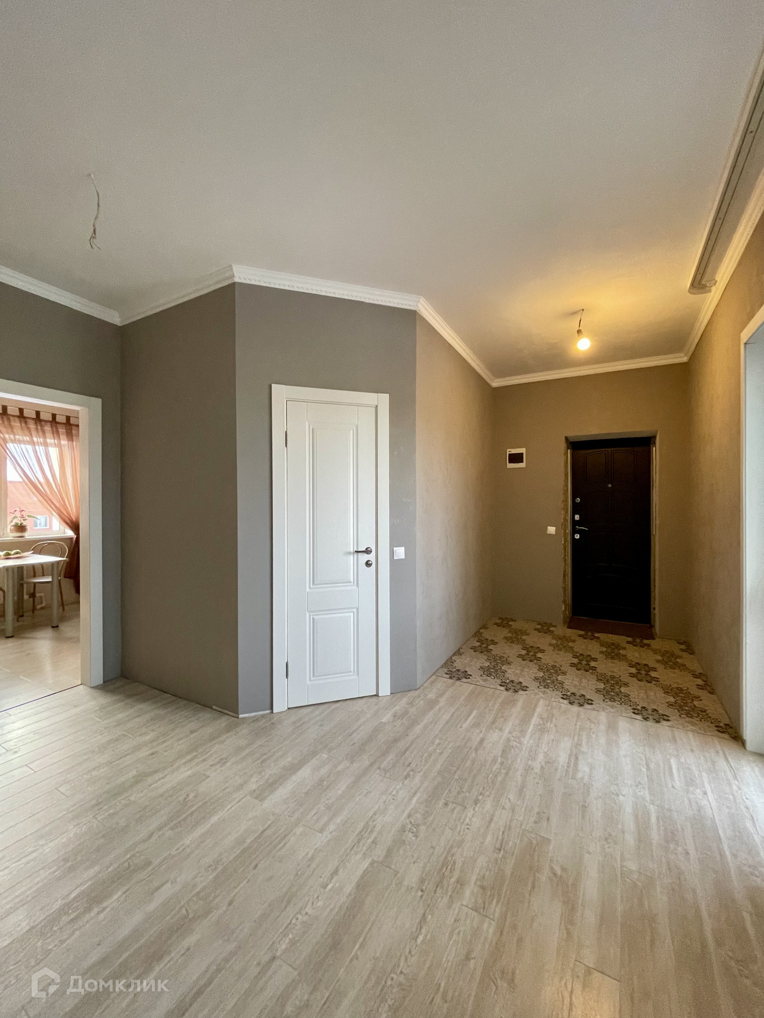*на полу ламинат, во входной зоне и сан.узле плитка