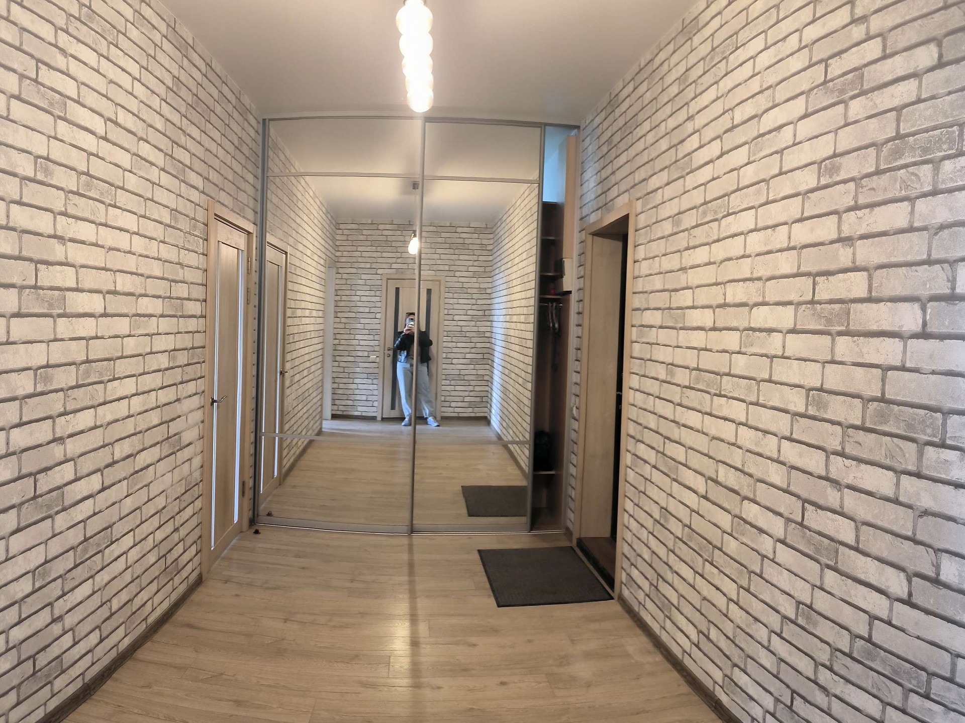 В коридоре оборудована вместительная гардеробная, с проведенным освещением для комфортного хранения личных вещей.