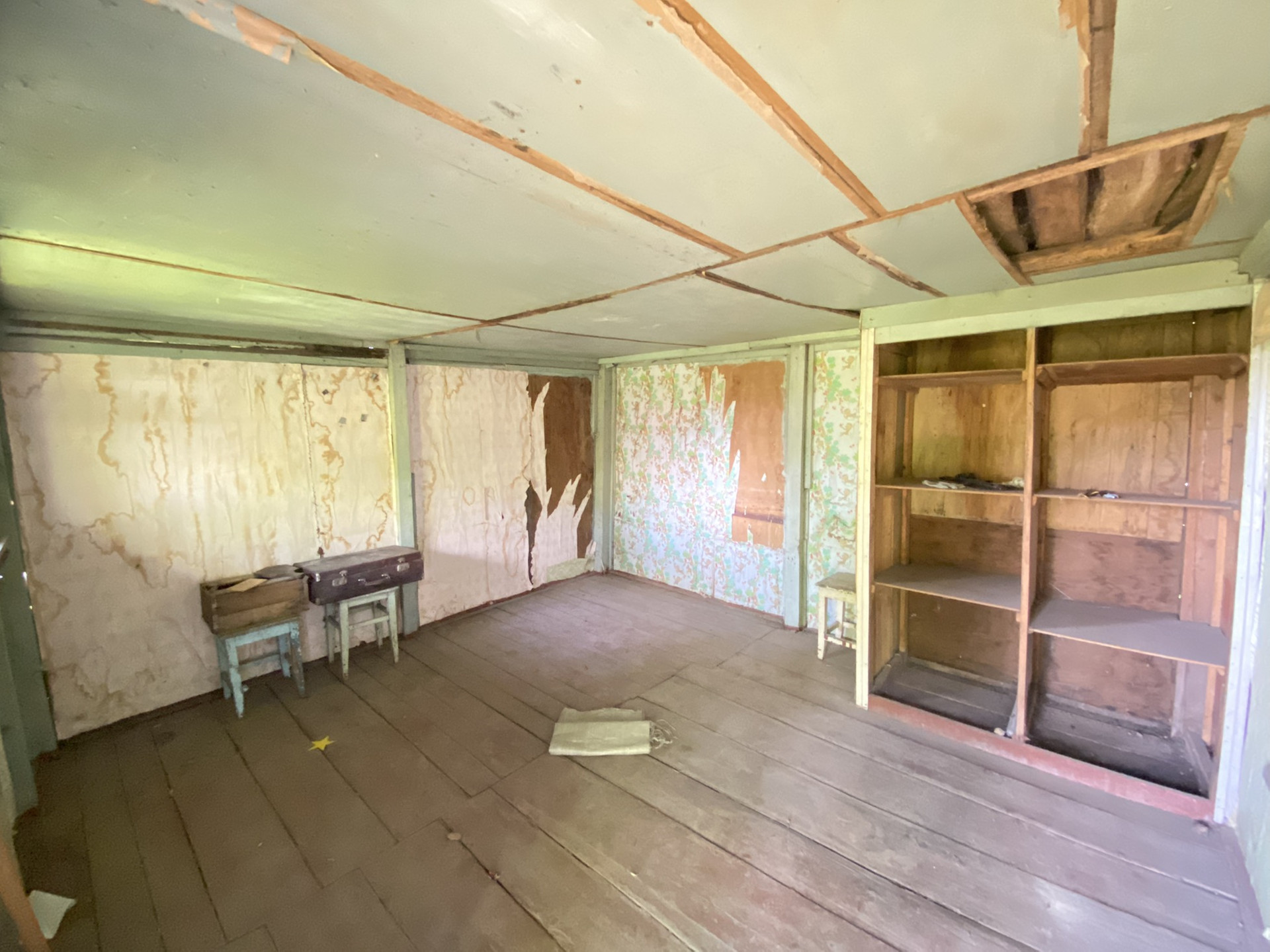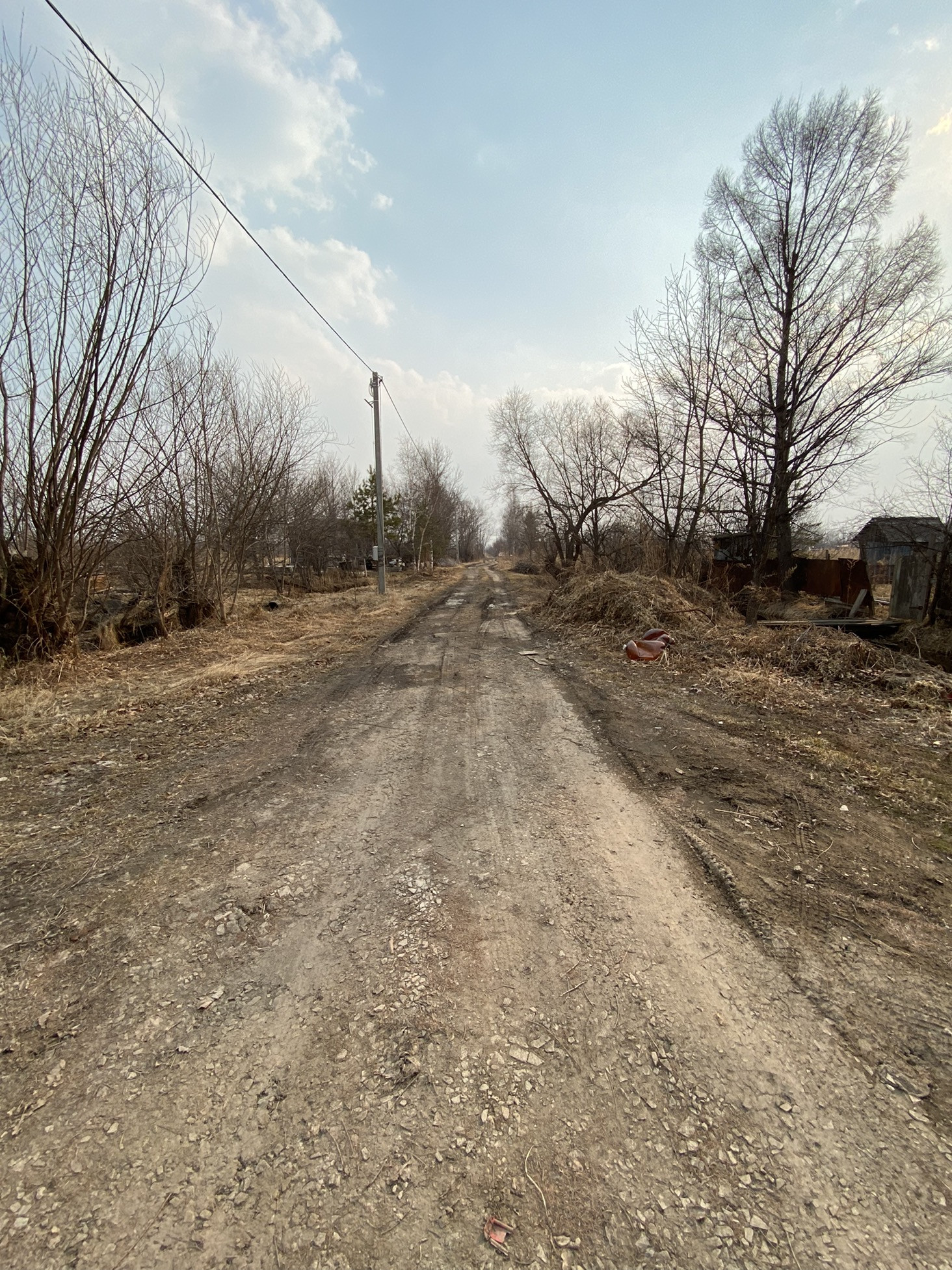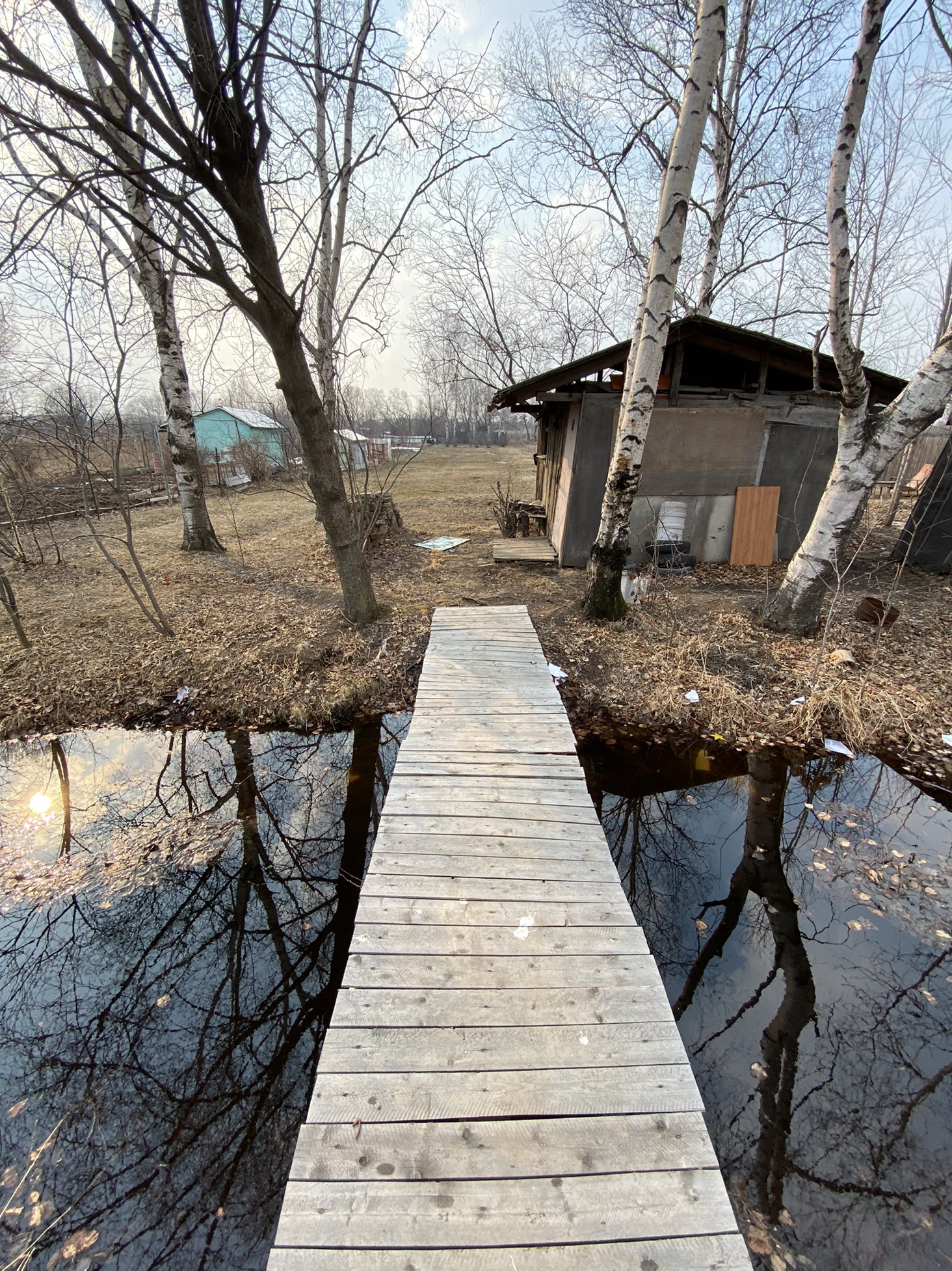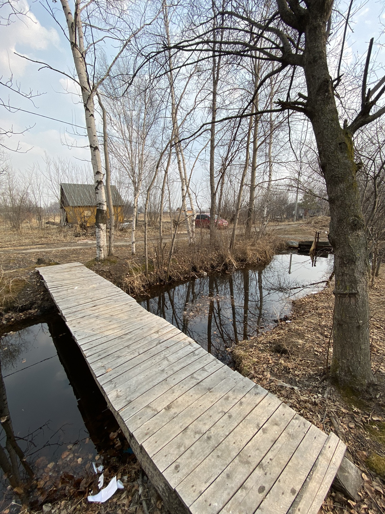 Есть домик деревянный и насаждения - плодовые деревья. Канава для полива. Очень живописно. В своё время было очень много завезено на участок перегноя, удобрений.