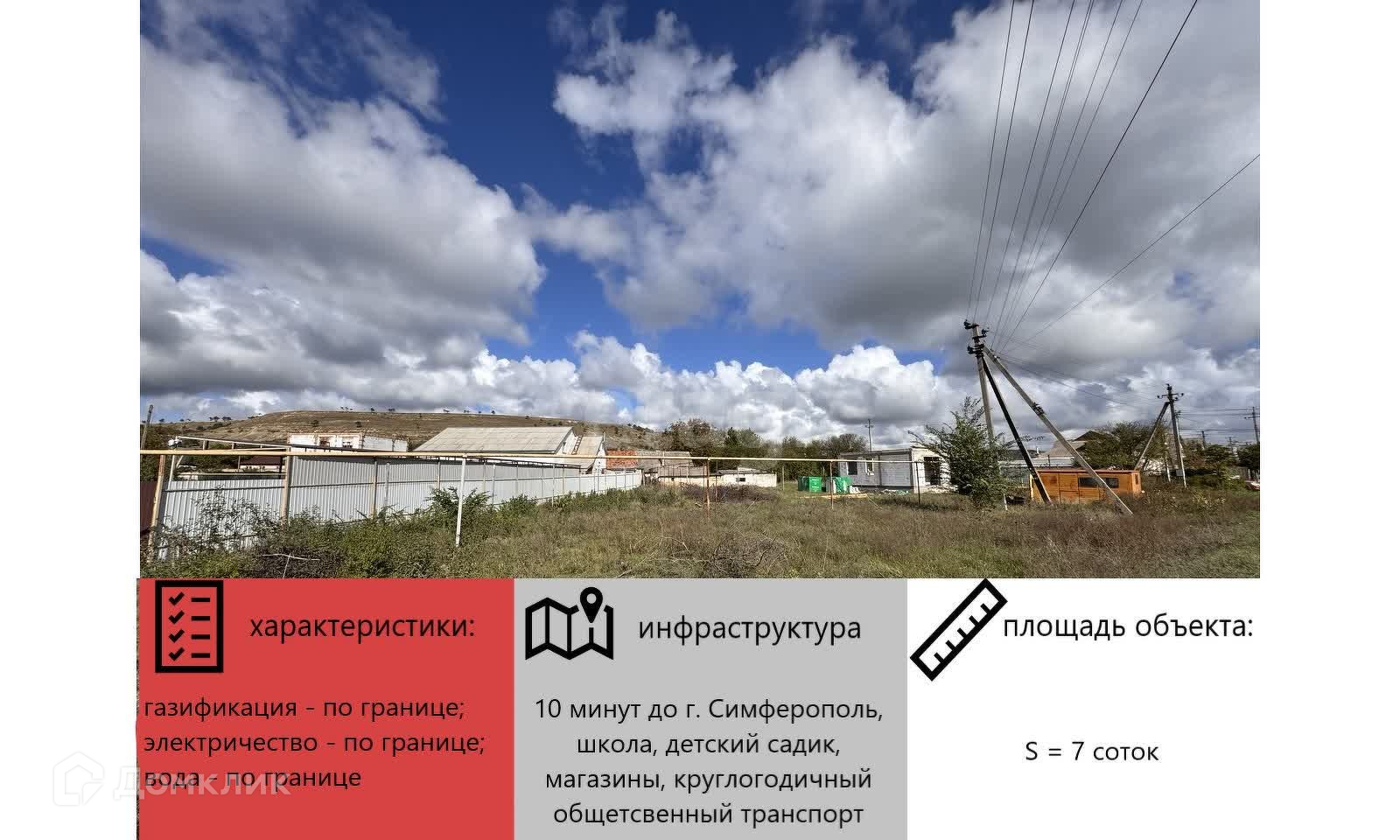 По границе участка газ, центральный водопровод, свет подключен!