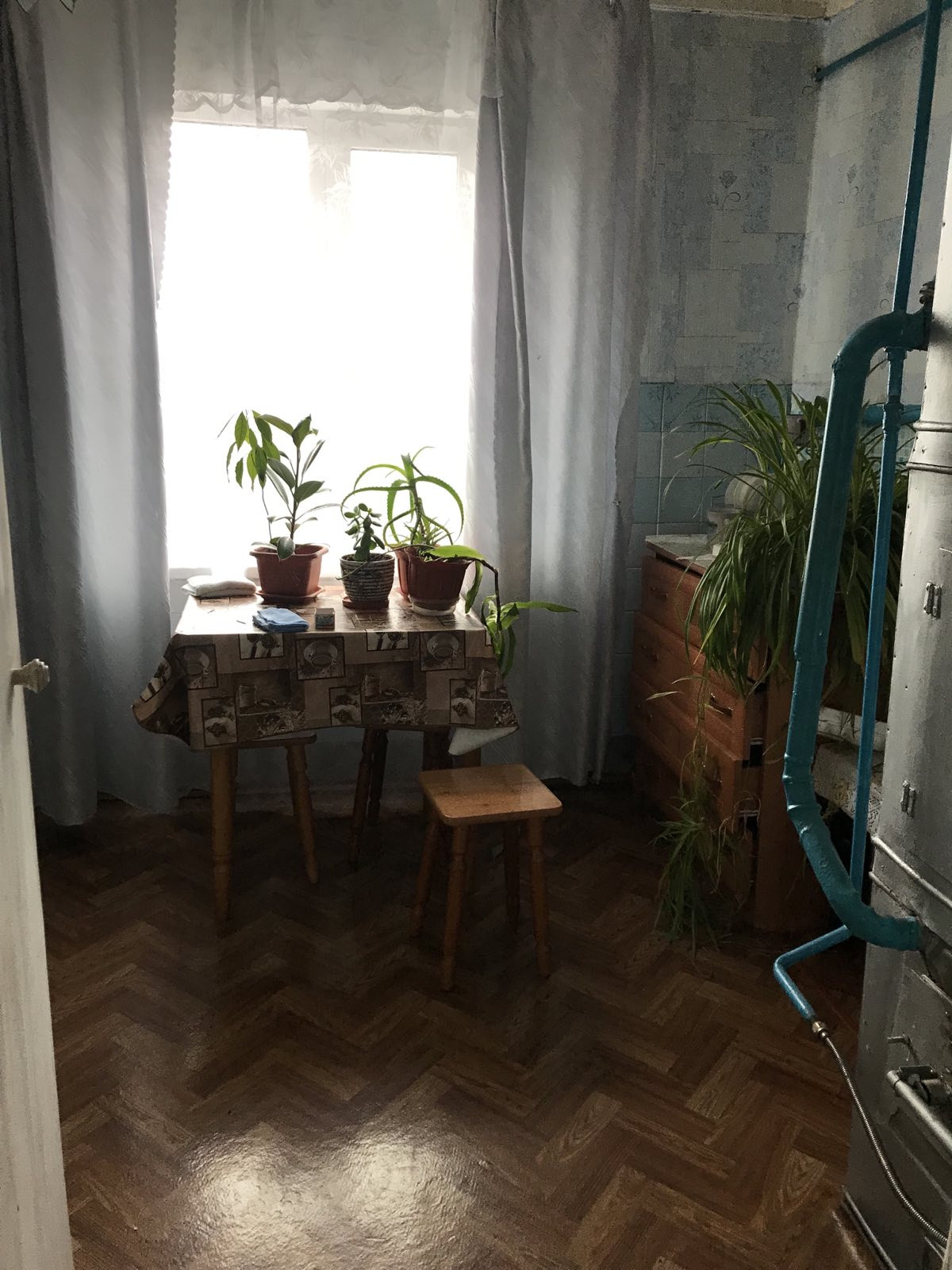 Дом отапливается газом, печка с котлом и газовой горелкой, трубы отопления с батареями.