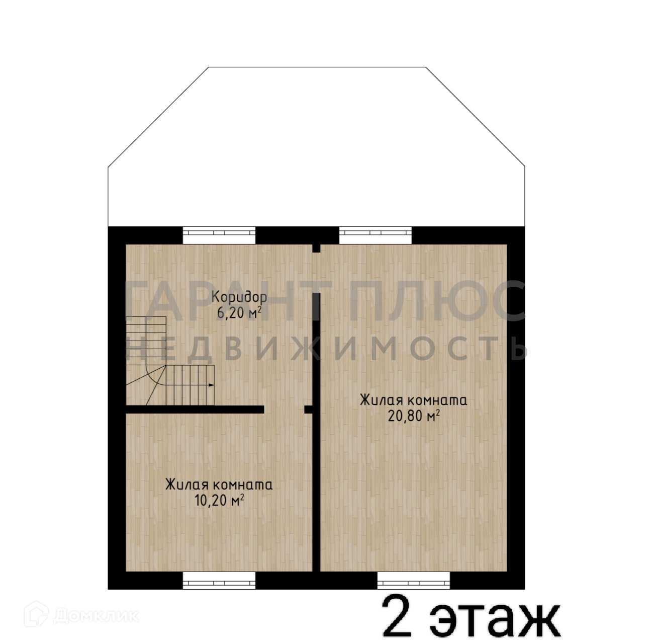 2 этаж: спальня - 20,8кв.м, спальня - 10,2кв.м.