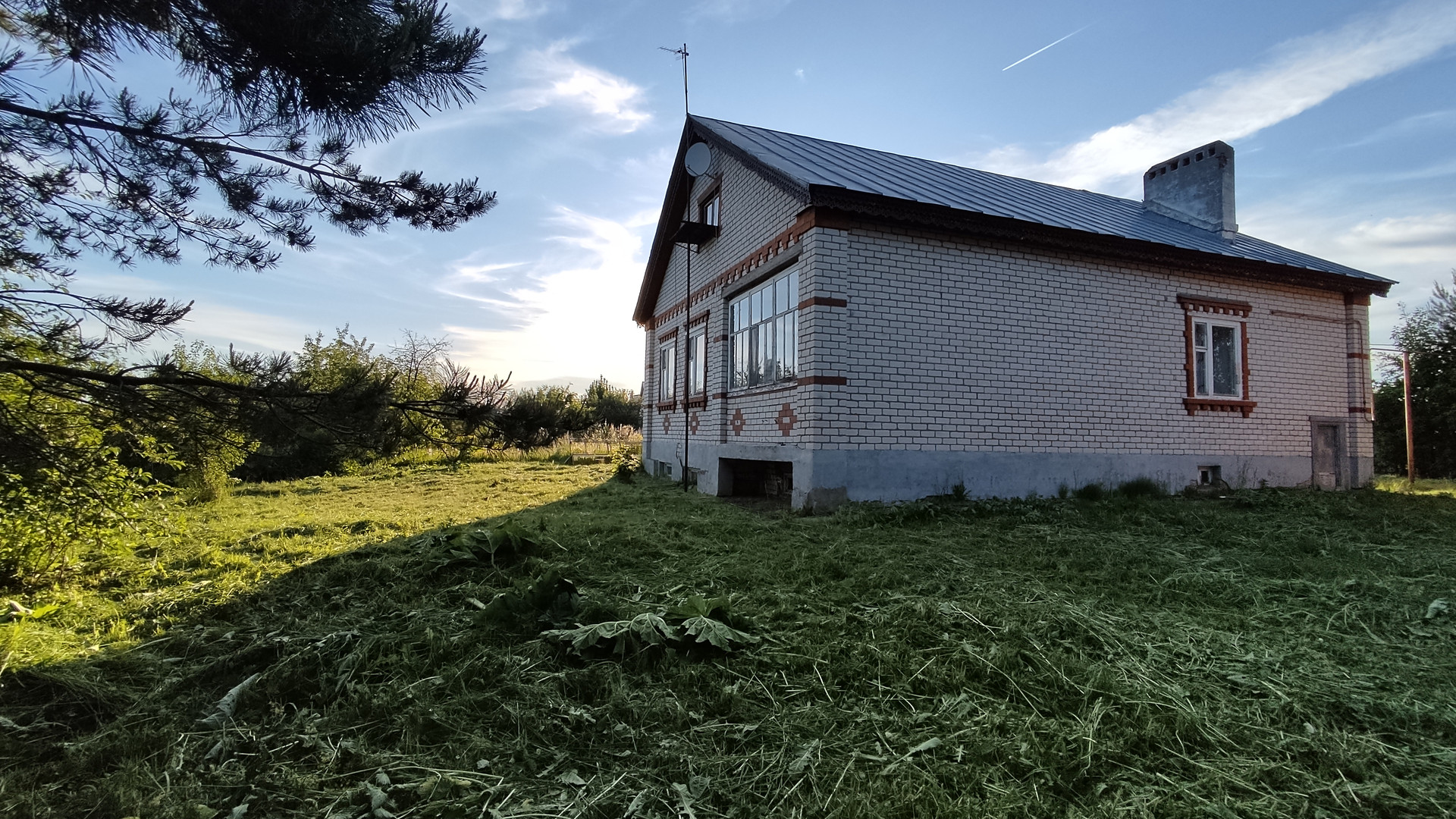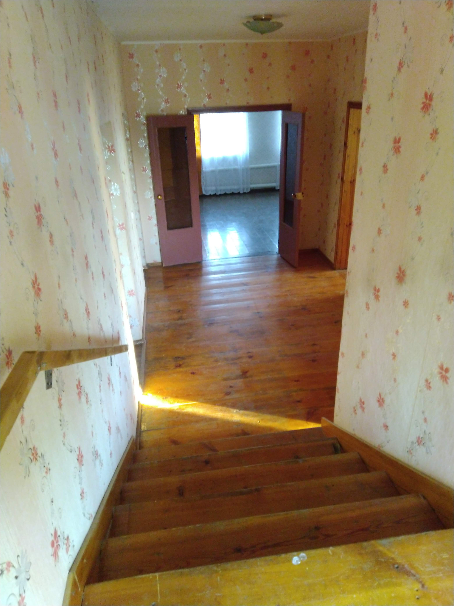 108,2 м2., газ, центральное водоснабжение, канализация, потолки 2,75 м., 3 изолированные комнаты, кухня, большая прихожая, с/у раздельный, лоджия, веранда. Чердачное помещение пригодно для размещения мансарды. Цоколь-подвал под всем домом, баня, отдельная постройка - гараж с подсобными помещениями 96 м2. Просторный участок с красивым открытым видом, много зеленых насаждений. Соседние участки расположены далеко. Остановка общественного транспорта в 150 м.  Чистая продажа, никто не прописан.