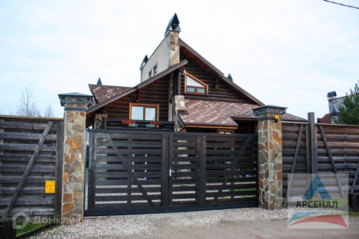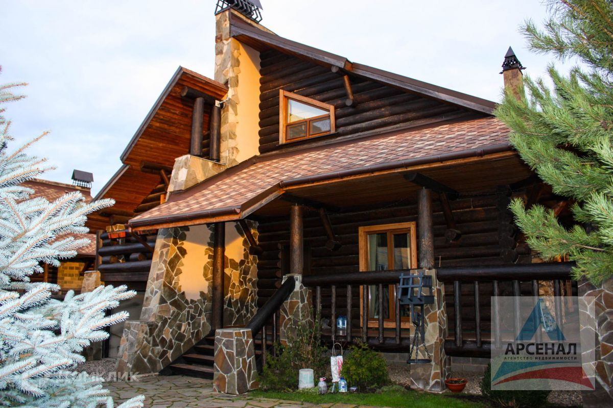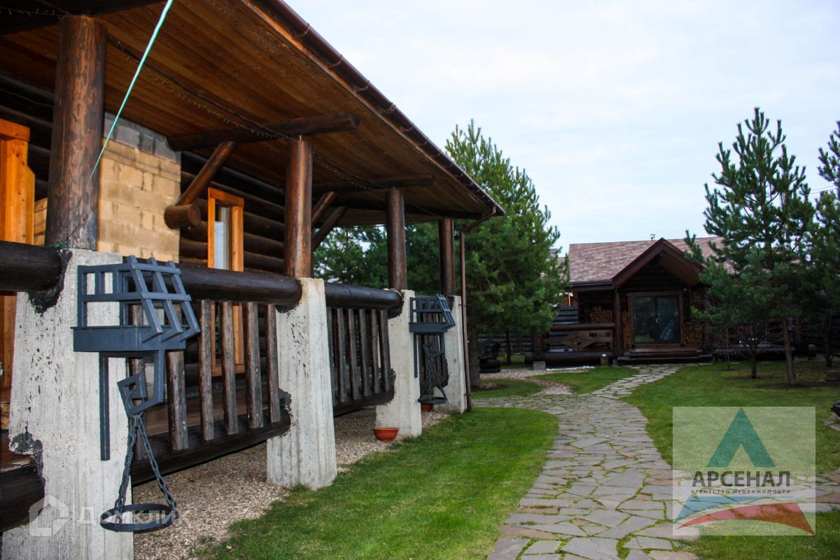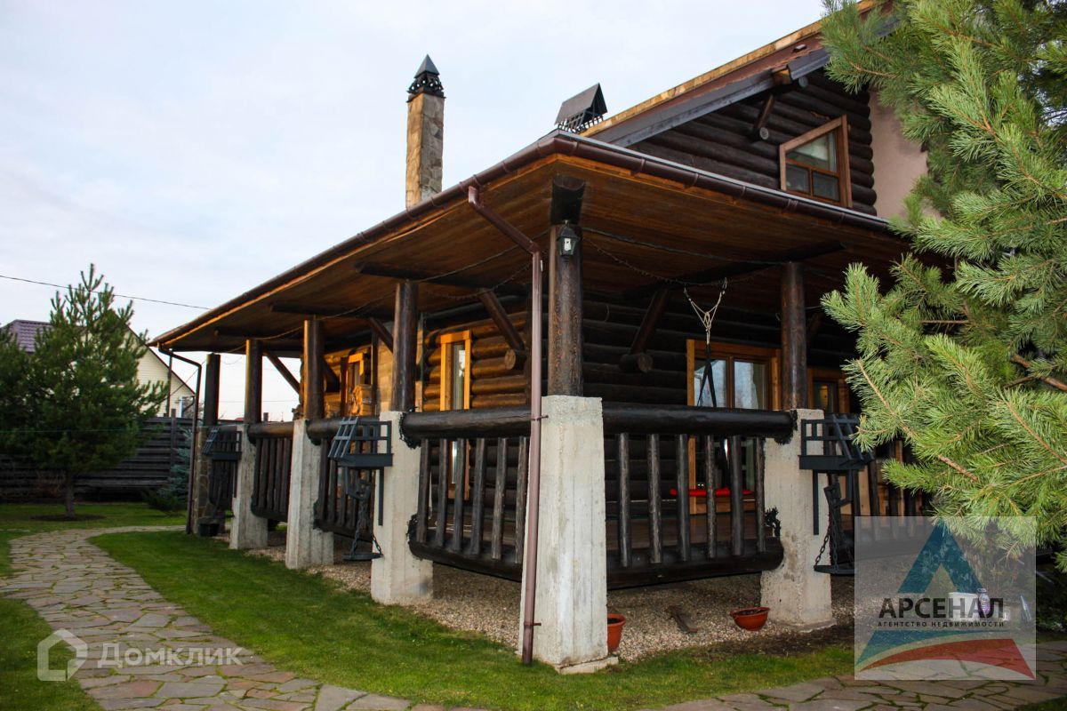 Дом построен по уникальному проекту из Сибирской лиственницы и Ангарской сосны с элементами художественной ковки. Дом ручной рубки собирался на месте. Дом в трех уровнях, на высоком фундаменте, со встроенным гаражом и огромной верандой по периметру дома.