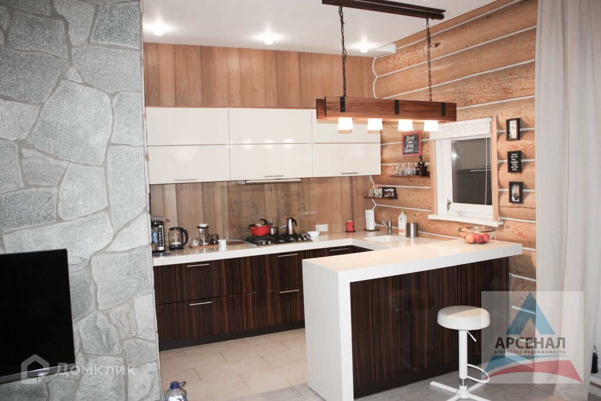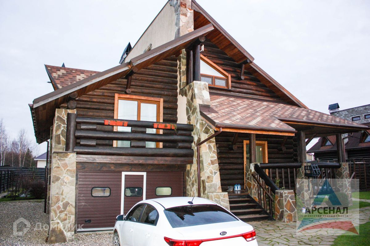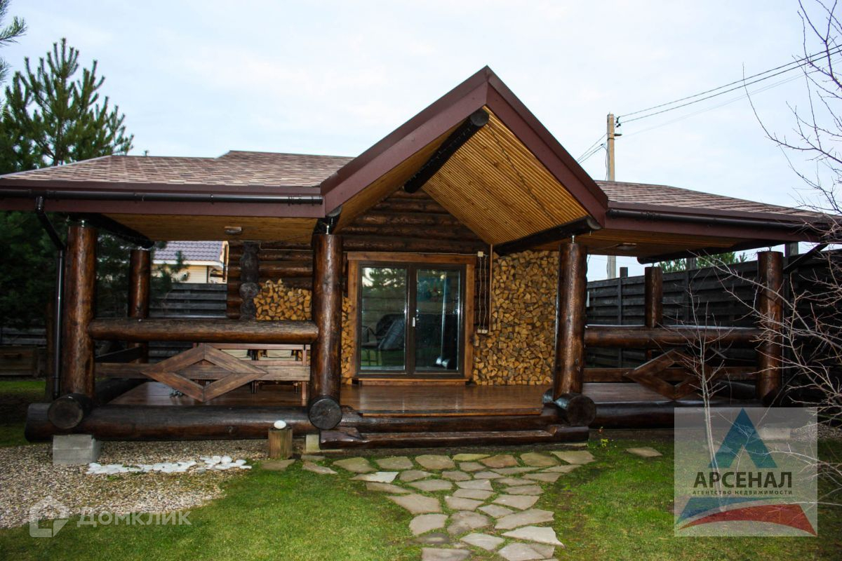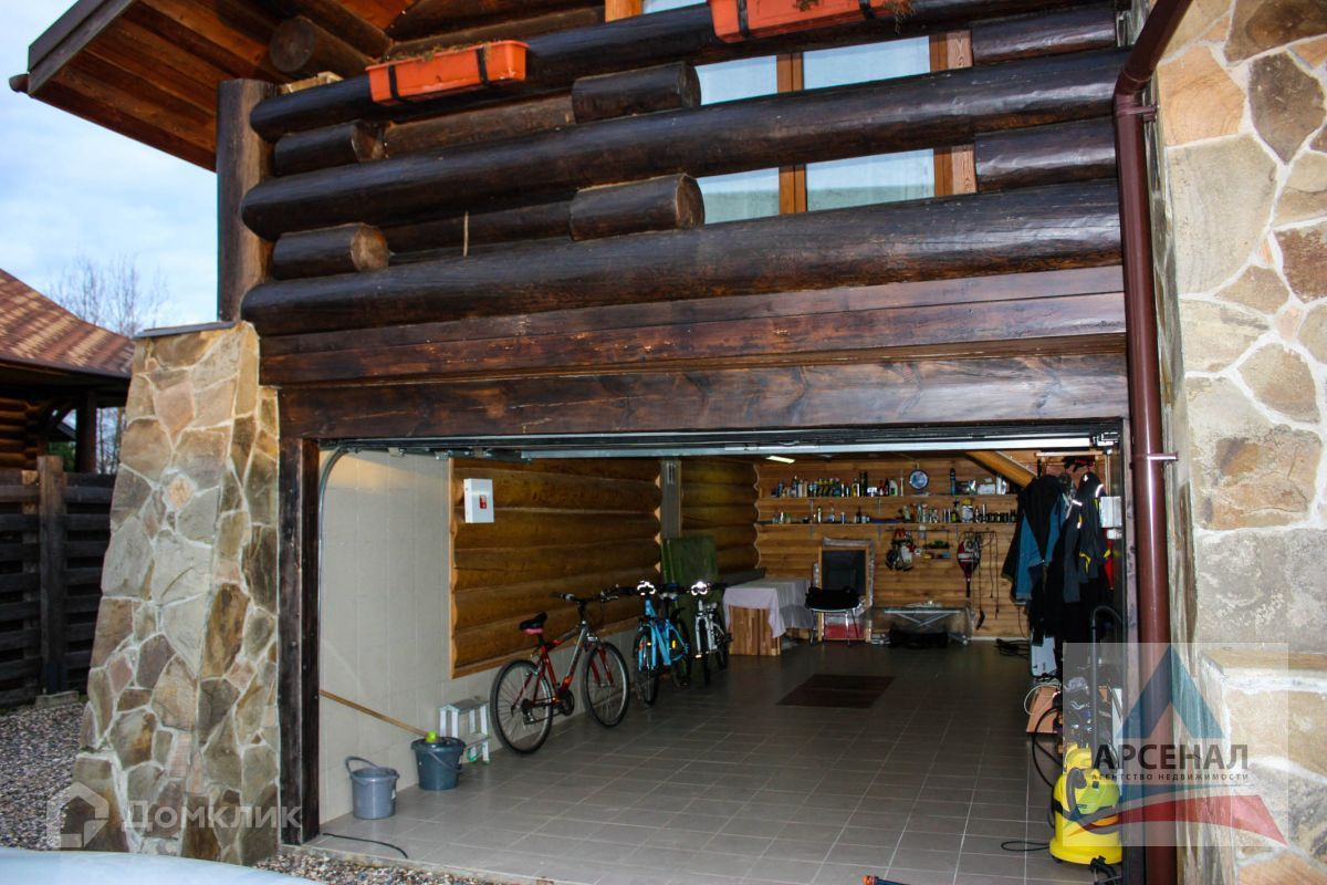 Дом построен по уникальному проекту из Сибирской лиственницы и Ангарской сосны с элементами художественной ковки. Дом ручной рубки собирался на месте. Дом в трех уровнях, на высоком фундаменте, со встроенным гаражом и огромной верандой по периметру дома.