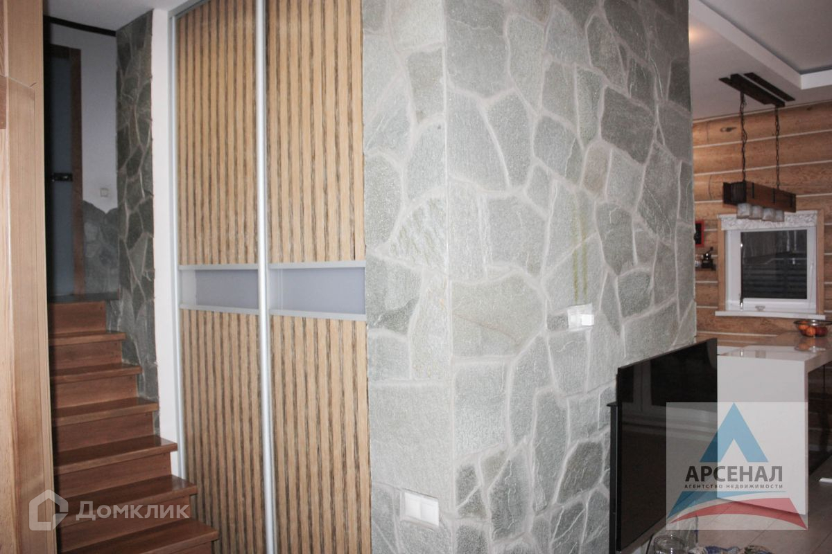 Площадь дома 165 м2, а вместе с гаражом 204 м2. Электричество 15 кВт, водоснабжение в доме, канализация септик, отопление от электрического котла. К дому подведена газовая труба. Внутренняя отделка дома из канадского кедра камерной сушки с элементами из натурального камня. Сделаны теплые полы на 1-м и 2-м уровнях. На первом уровне просторная прихожая, кухня-гостиная с выходом на террасу, хоз шкаф. На втором 2 отдельные комнаты и ванная комната, на третьем просторная мансардная комната.
