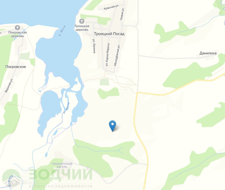 Участок граничит с р. Юнга, ниже участка с. Троицкий Посад.