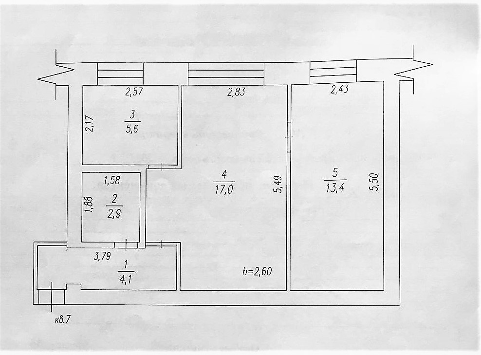 Высота потолков 2.6 м
