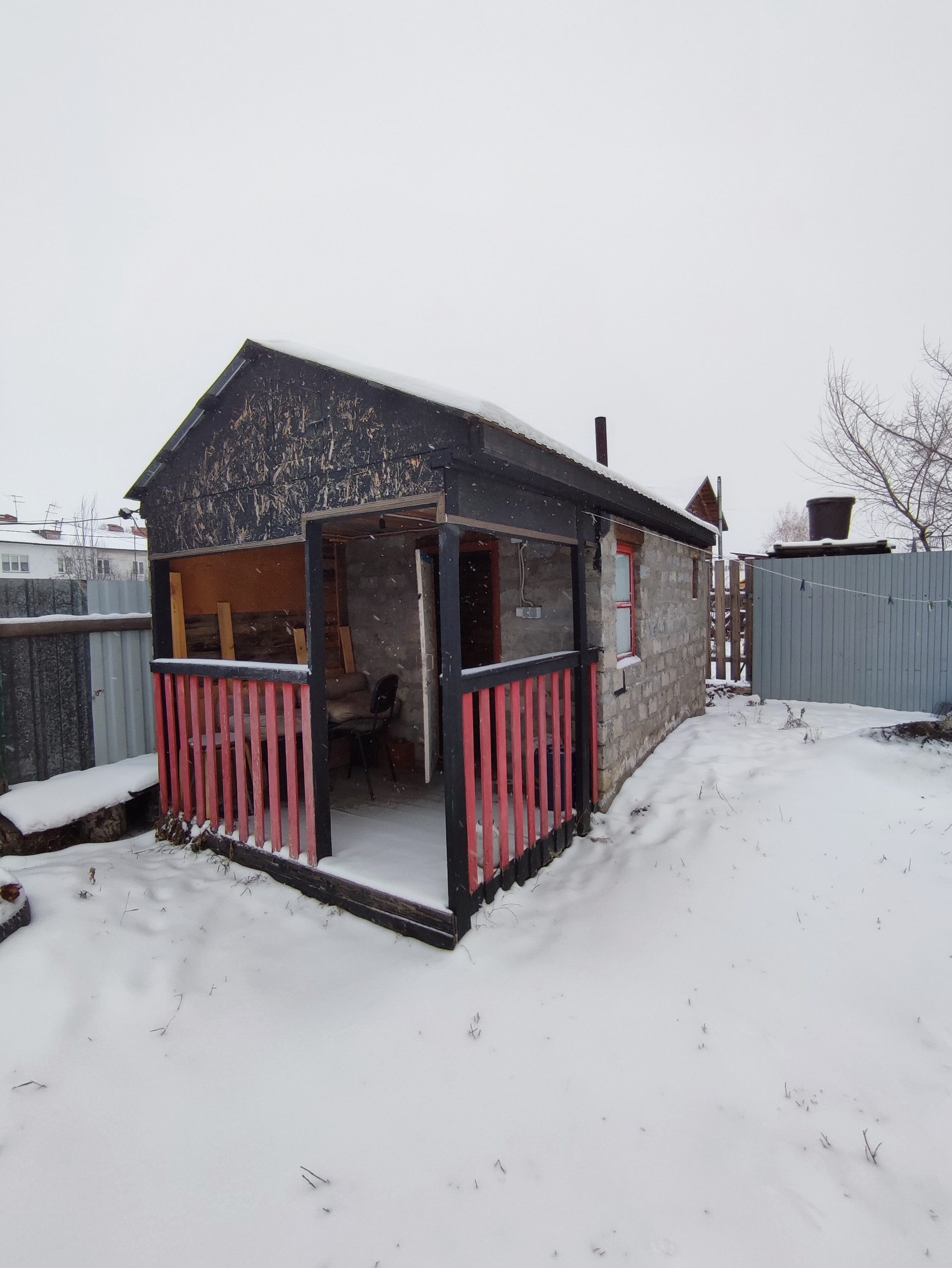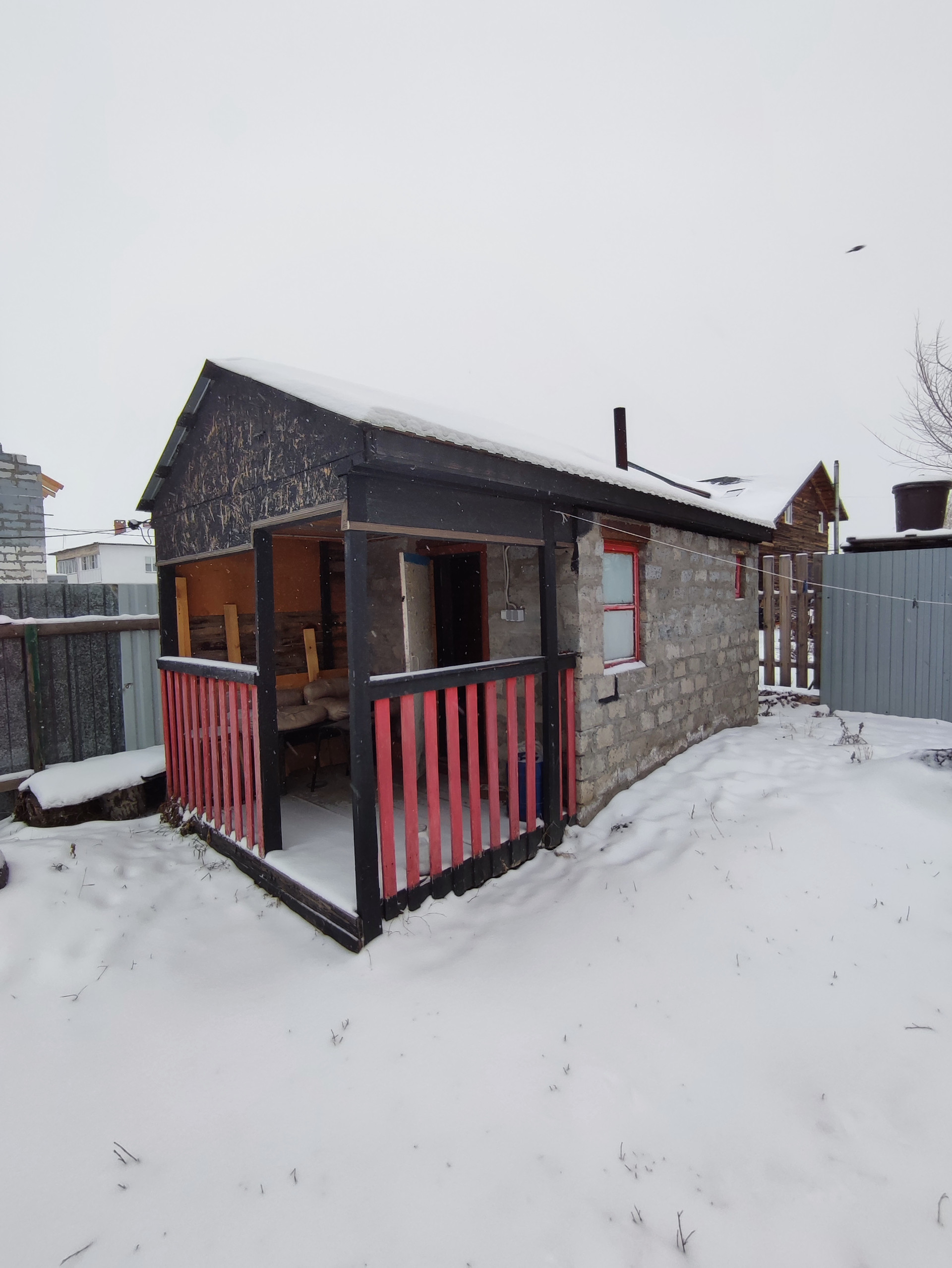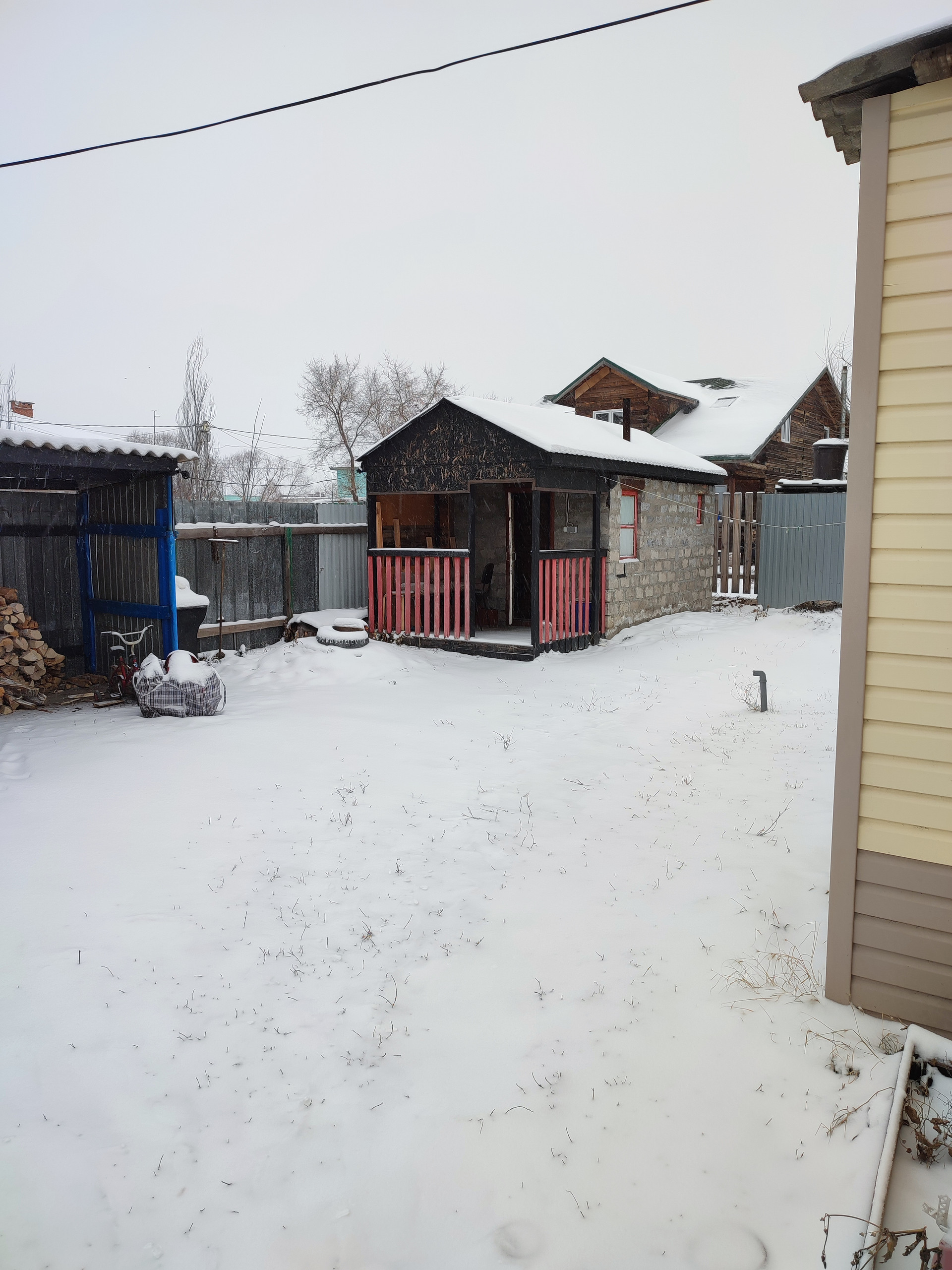 Имеется баня с беседкой, хоз постройки.Залит фундамент для пристройки на 40 кв.м., есть керамзитоблок для стен.