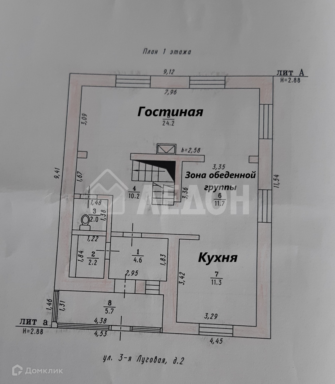Расположен на земельном участке прямоугольной формы - 7,49 соток