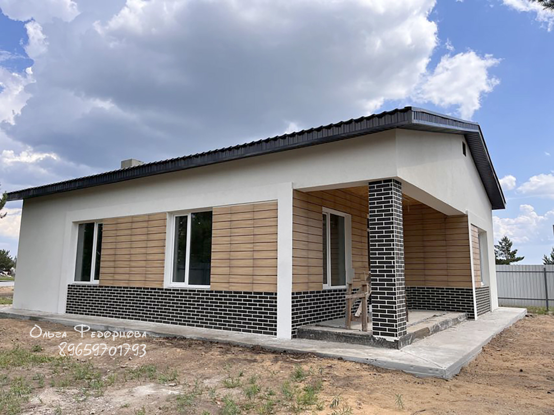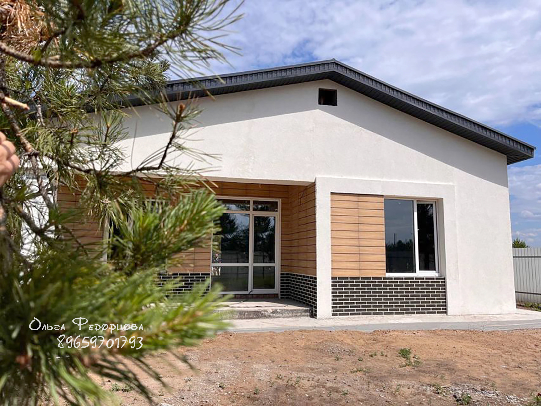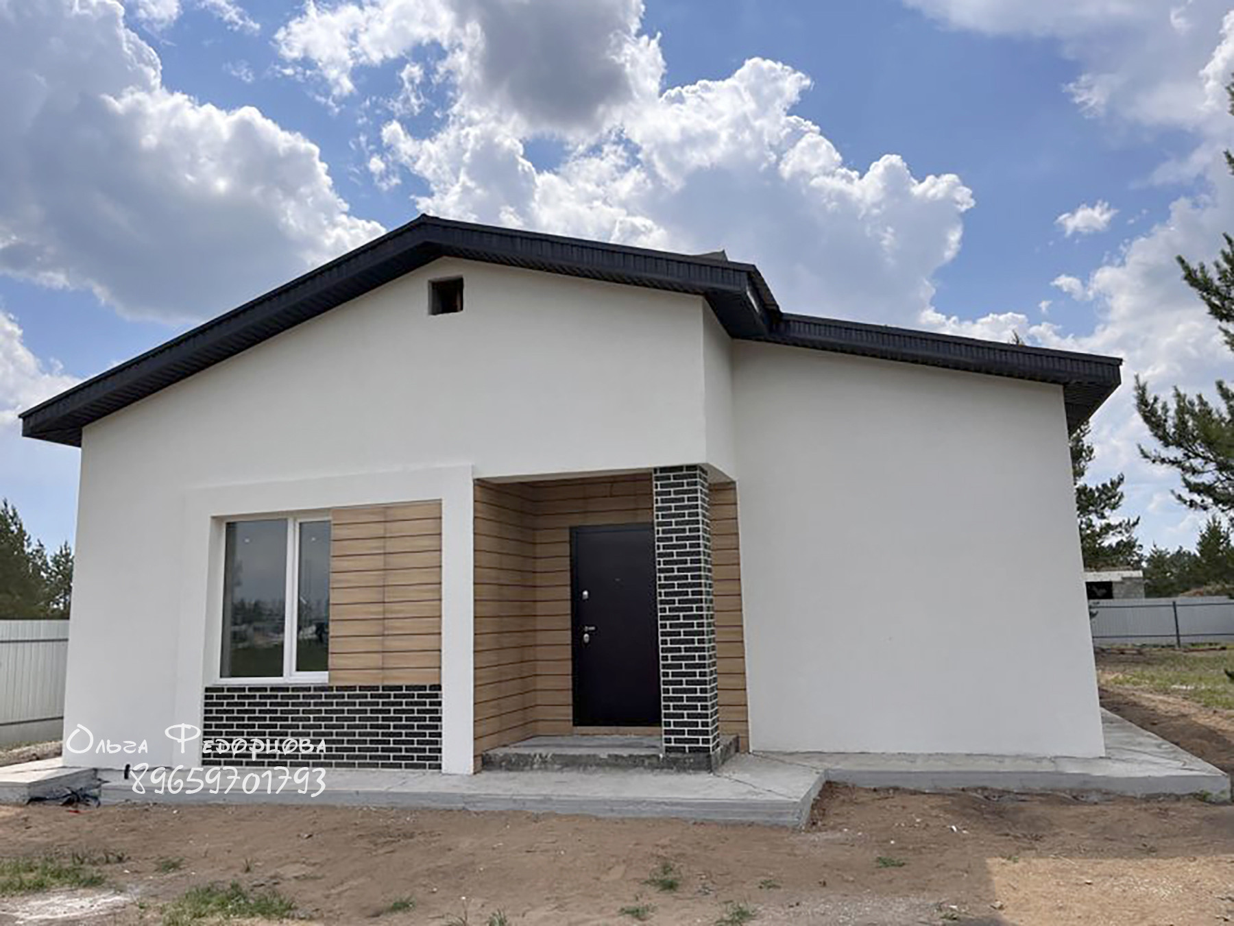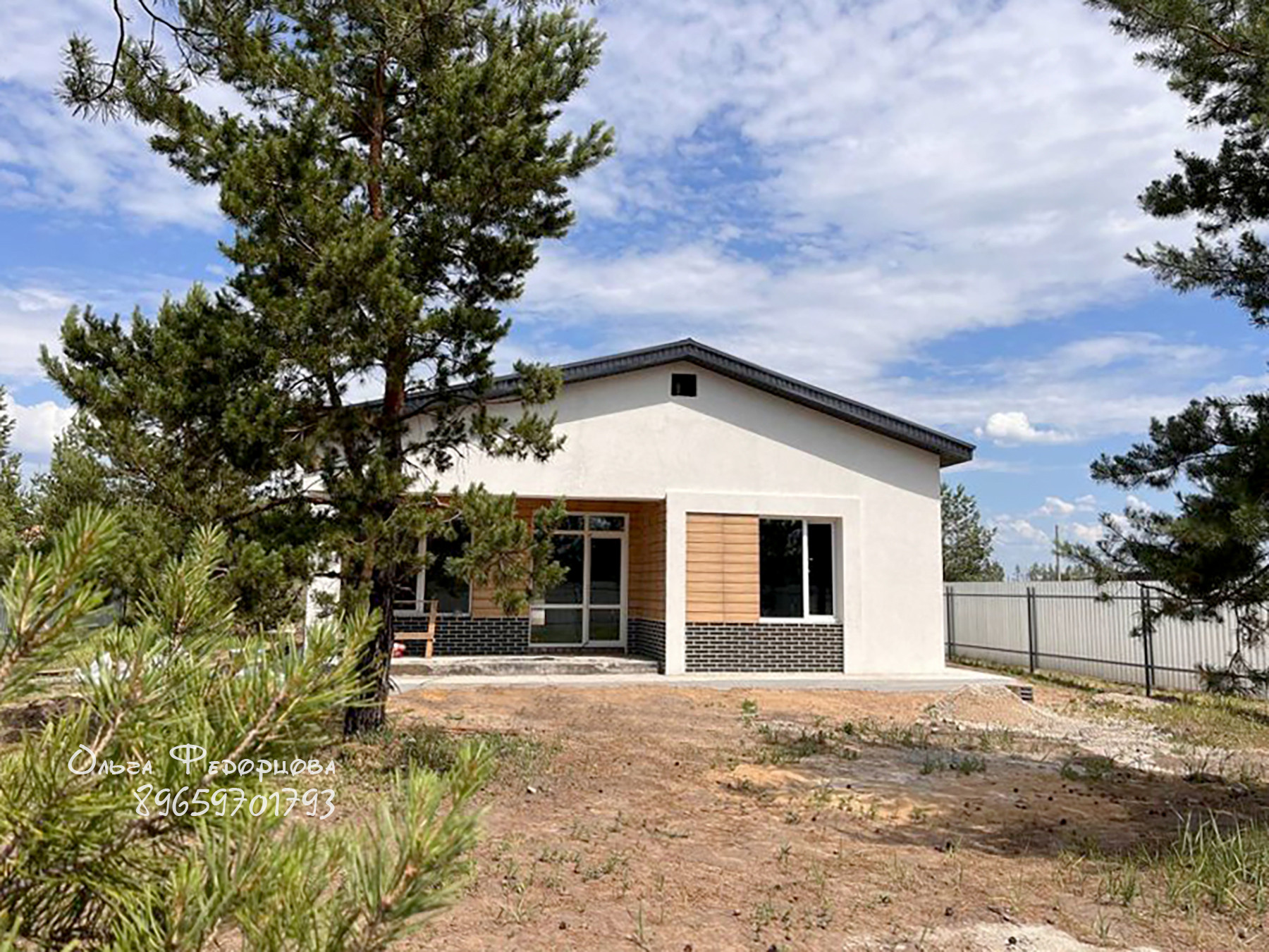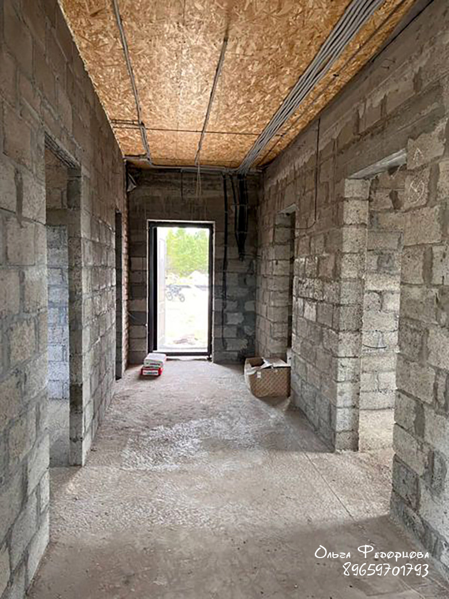 Новый дом на завершении строительства с черновой отделкой. Общая площадь 103 м2, внутренняя 99,9 м2. В доме три спальни, санузел, смежные кухня с технической комнатой и гостиная с выходом на террасу. Участок 9,15 соток.