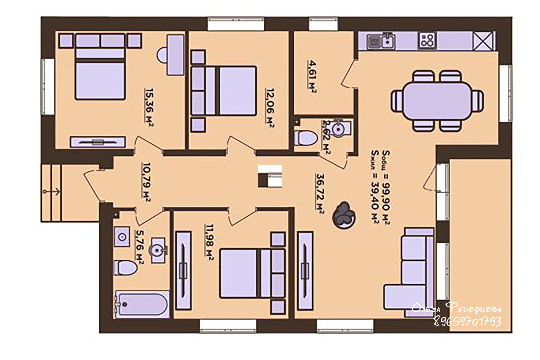 Общая площадь 103 м2