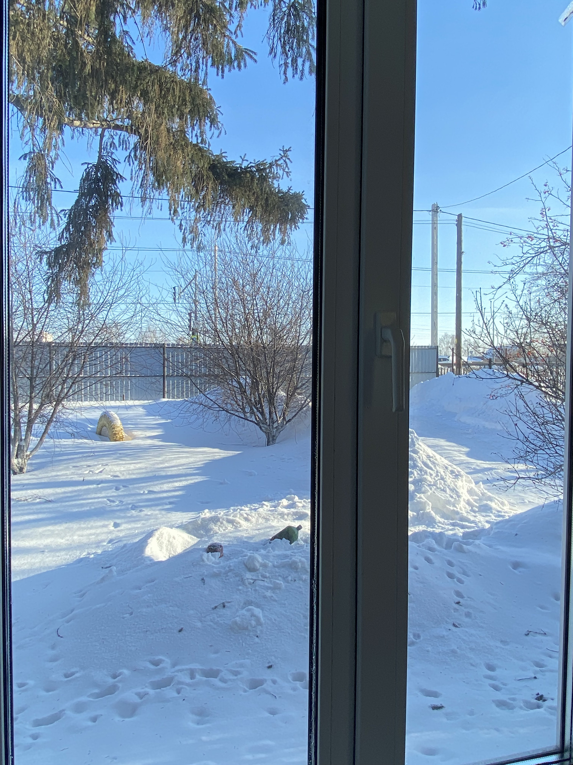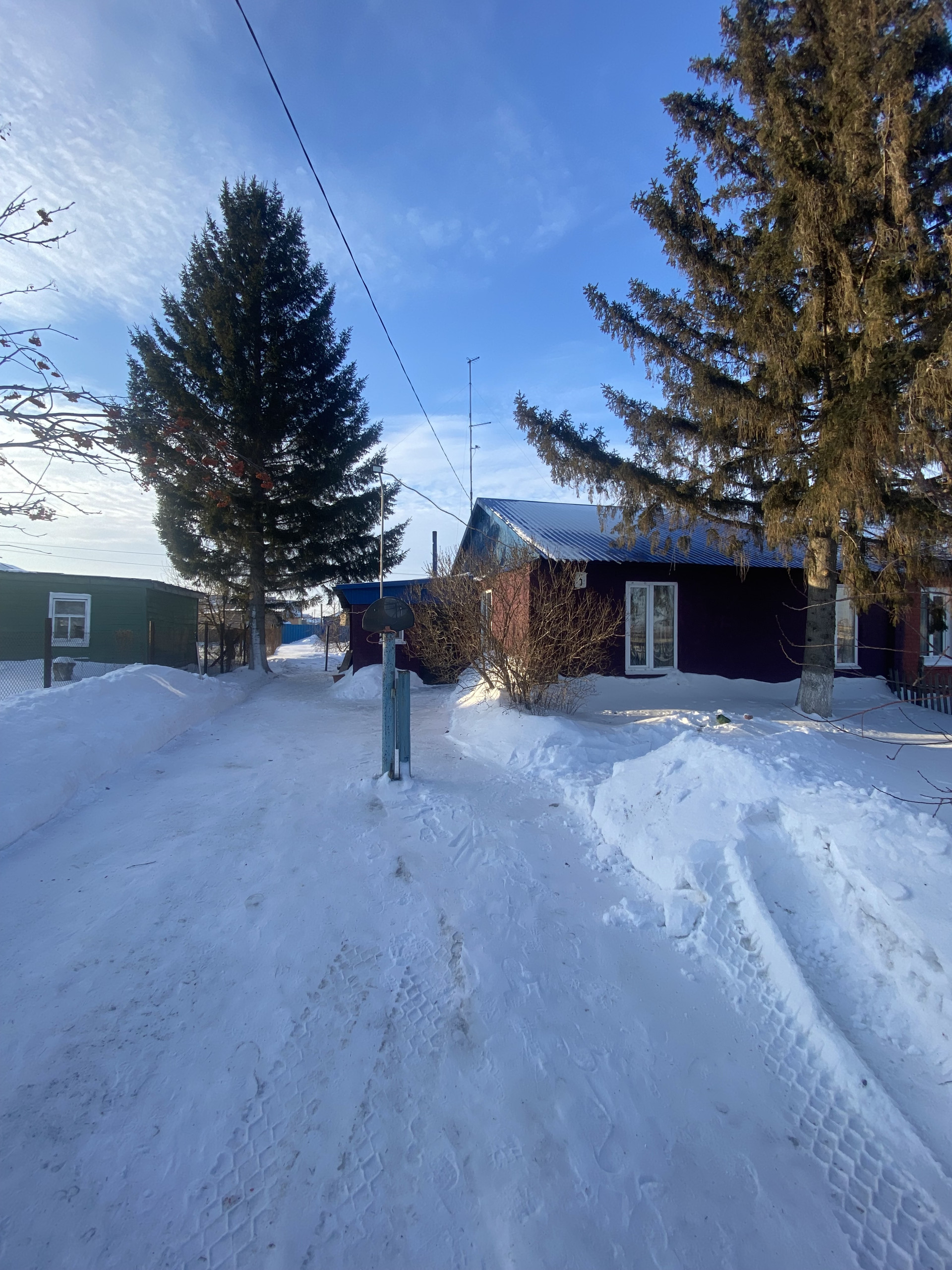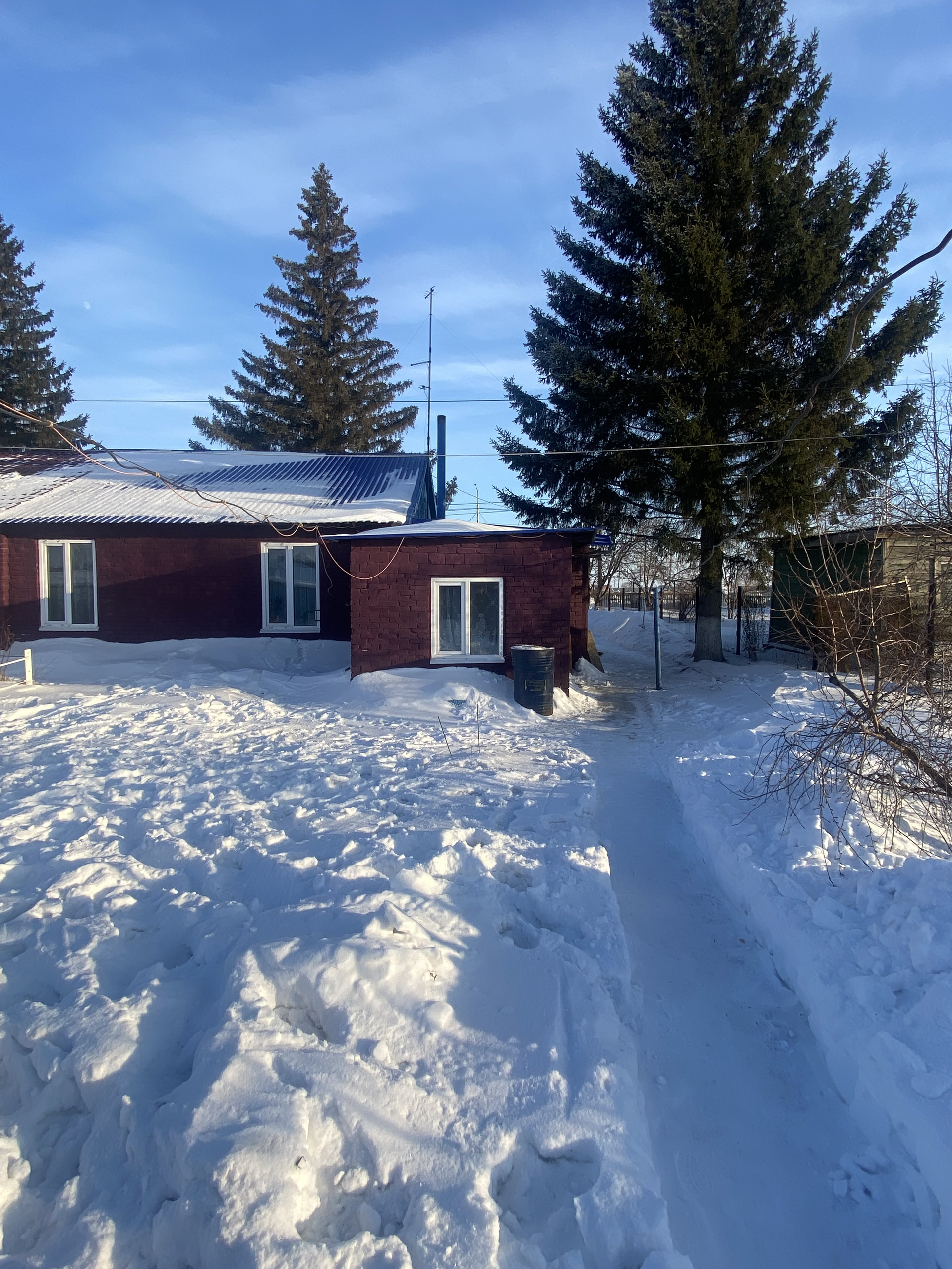 Из окон дома видны красивые ёлочки, которые растут прям во дворе.