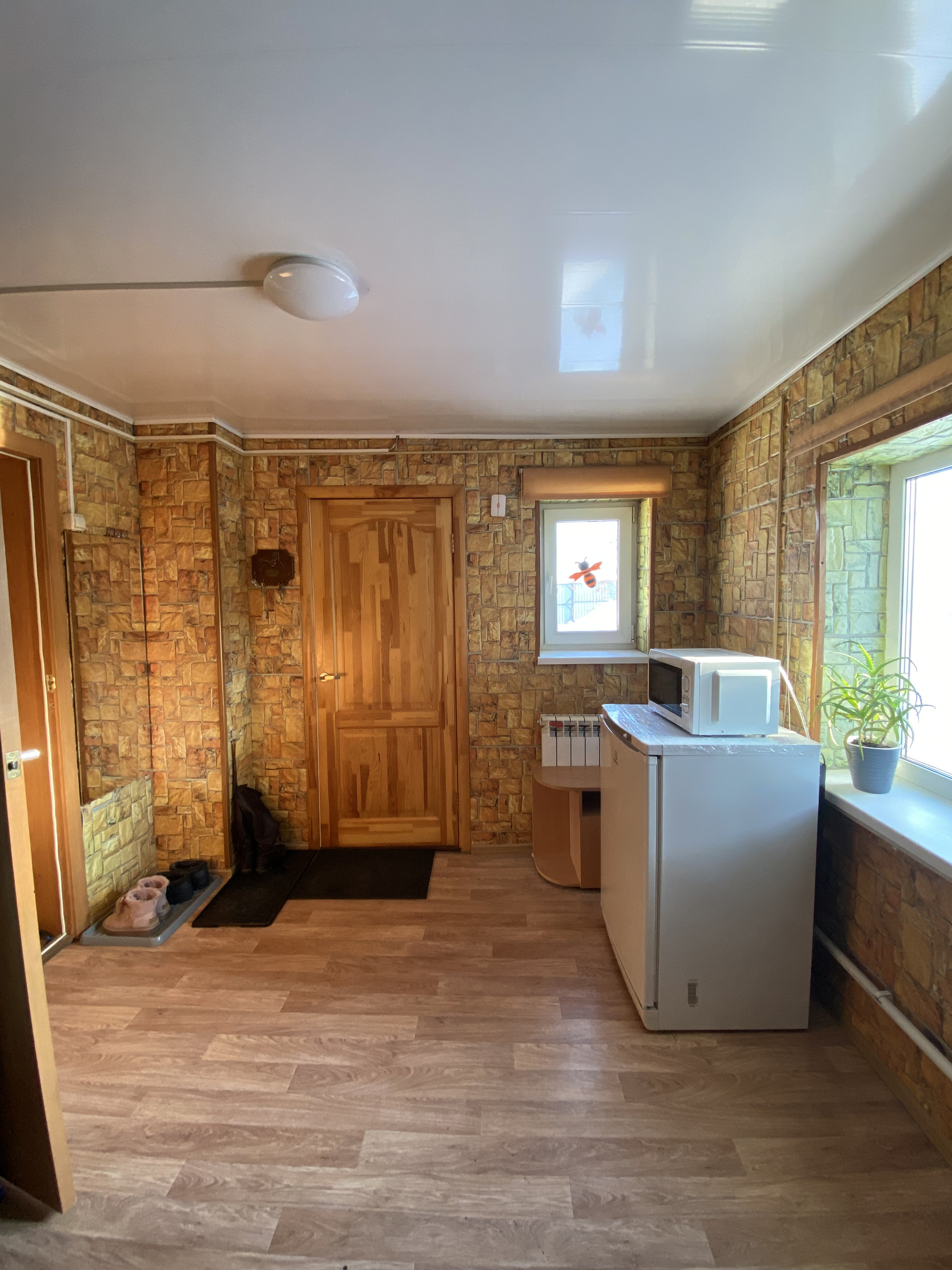 В доме три комнаты, кухня, сан узел с душевой, прихожая, утеплённая веранда, кочегарка. В кухни имеется достаточно вместительный погреб, где вы сможете хранить соленья, варенья. По ремонту уже всё сделано в доме, это полностью поменяли электропроводку (медная), установлены 5-ти камерные окна ПВХ, натяжные потолки с точечным освещением, поменяли пол, выровнены стены.